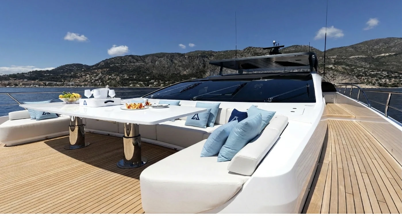 The combination keeps the visual language restrained and easy to apply across different materials on the yacht. The darker tones provide structure, while the neutrals help maintain clarity without adding unnecessary noise.