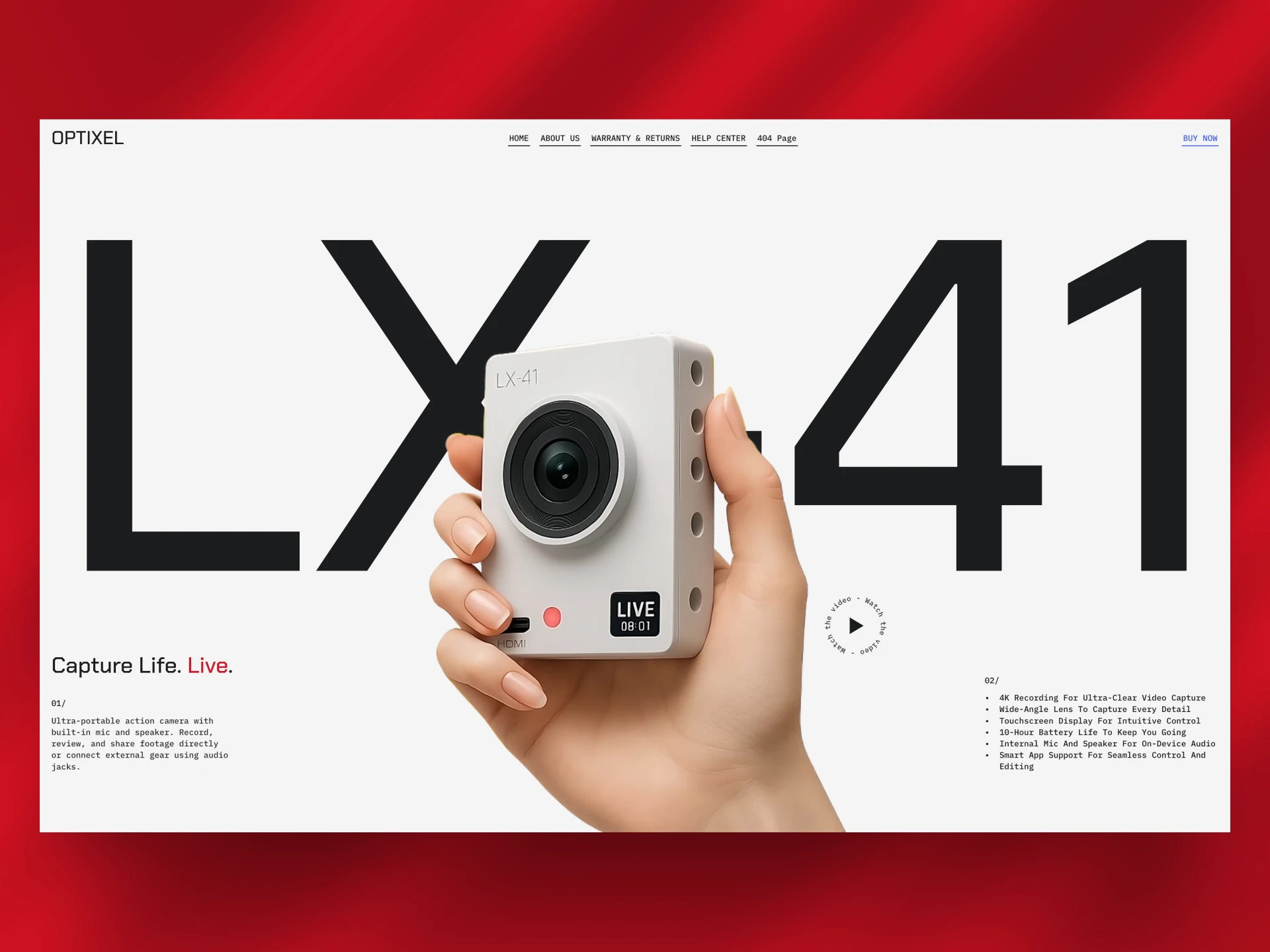 A refined and minimal website for OPTIXEL, a premium camera brand. Built to spotlight a single flagship product with a clean layout, subtle motion, and elegant structure.