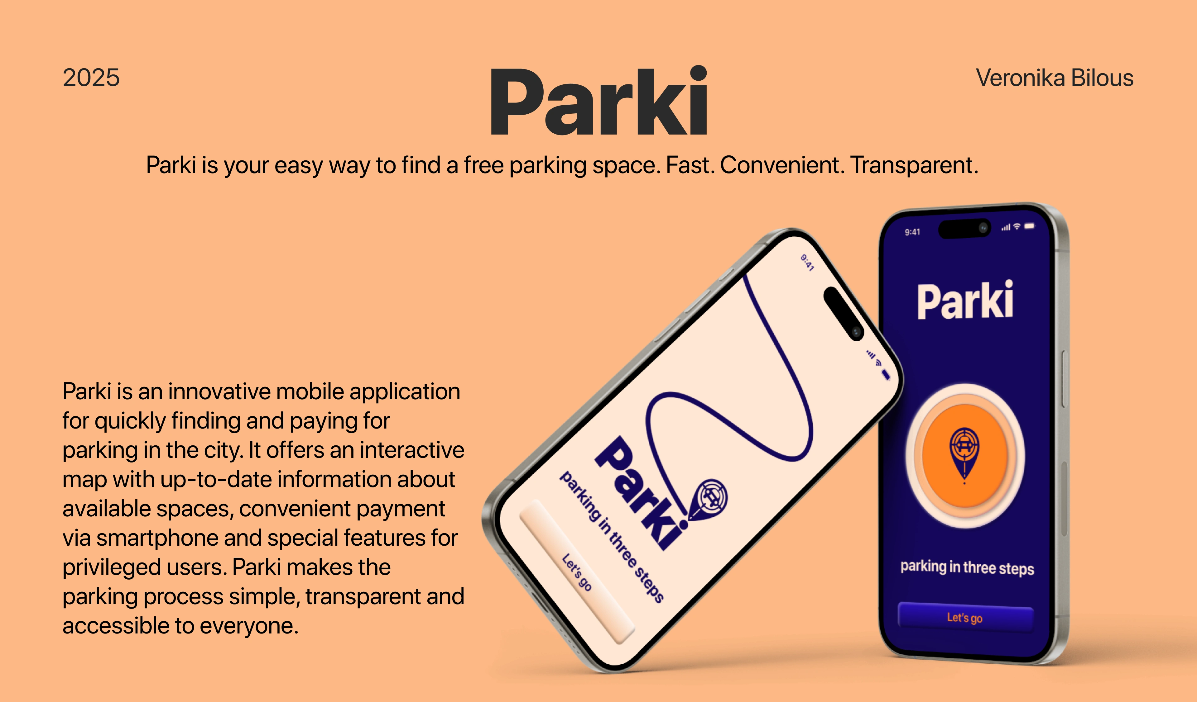Parki is a mobile app for finding parking, checking available spots on a map, and paying easily via smartphone.
