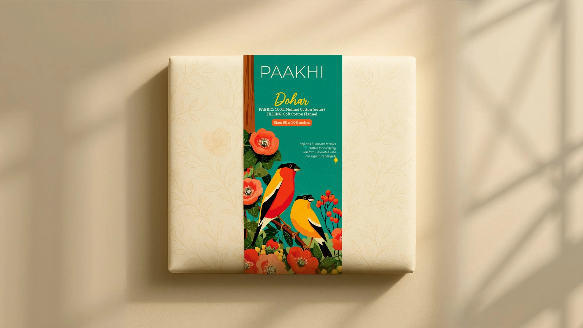 Created a unique packaging system for Paakhi, a bedsheet Co. blending brand visuals and storytelling - boosting shelf presence, recognition, and consumer trust.