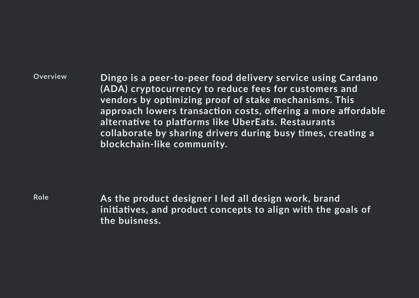 Overview:Dingo is a peer-to-peer food delivery app using Cardano's ADA cryptocurrency to lower fees for users and vendors. It creates a community-driven delive…