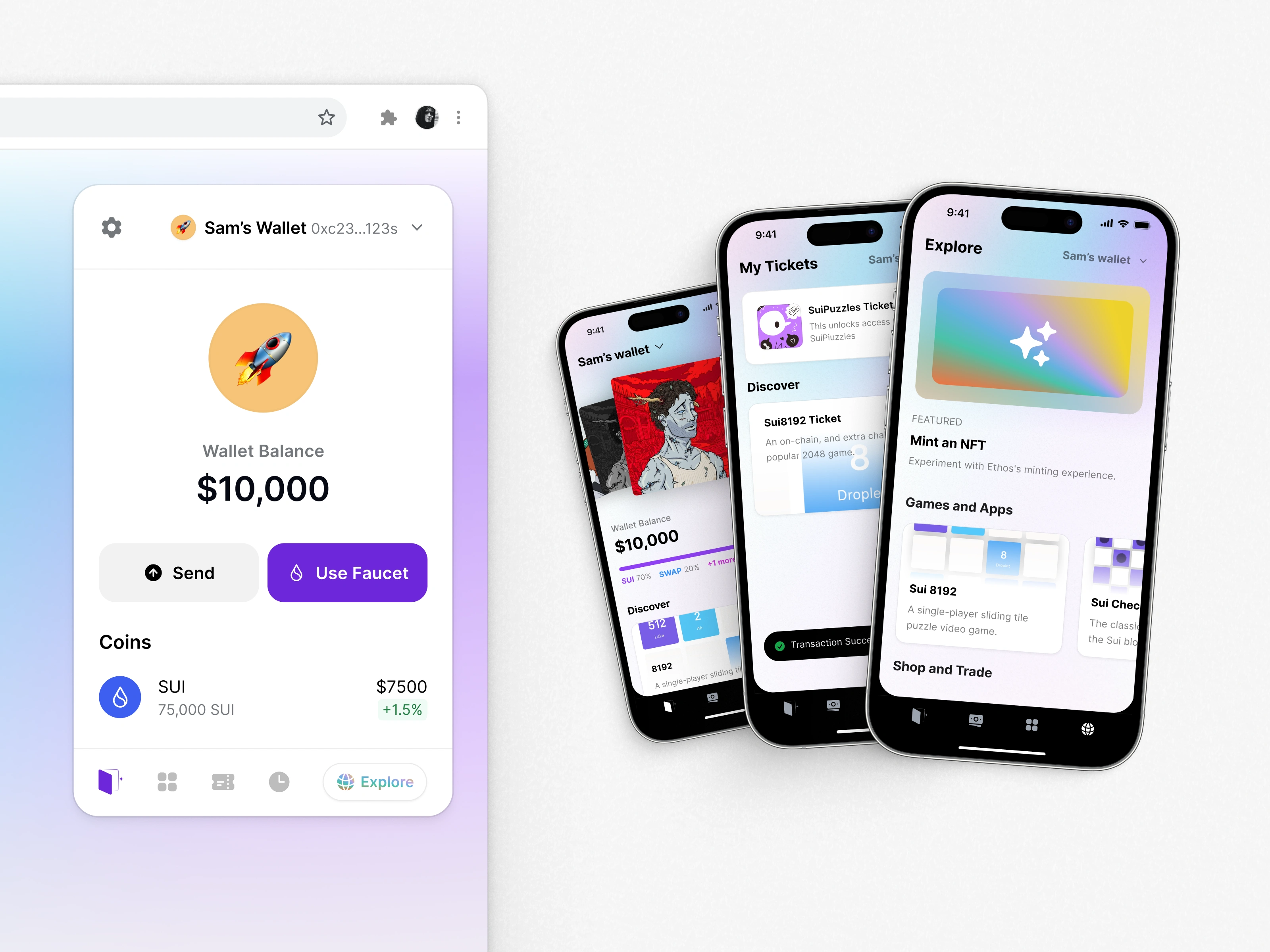 Ethos Wallet focused on a unifying access dApp experiences on the SUI blockchain, had me working on product improvements and growth experiments leveraging on-chain primitives like NFTs.