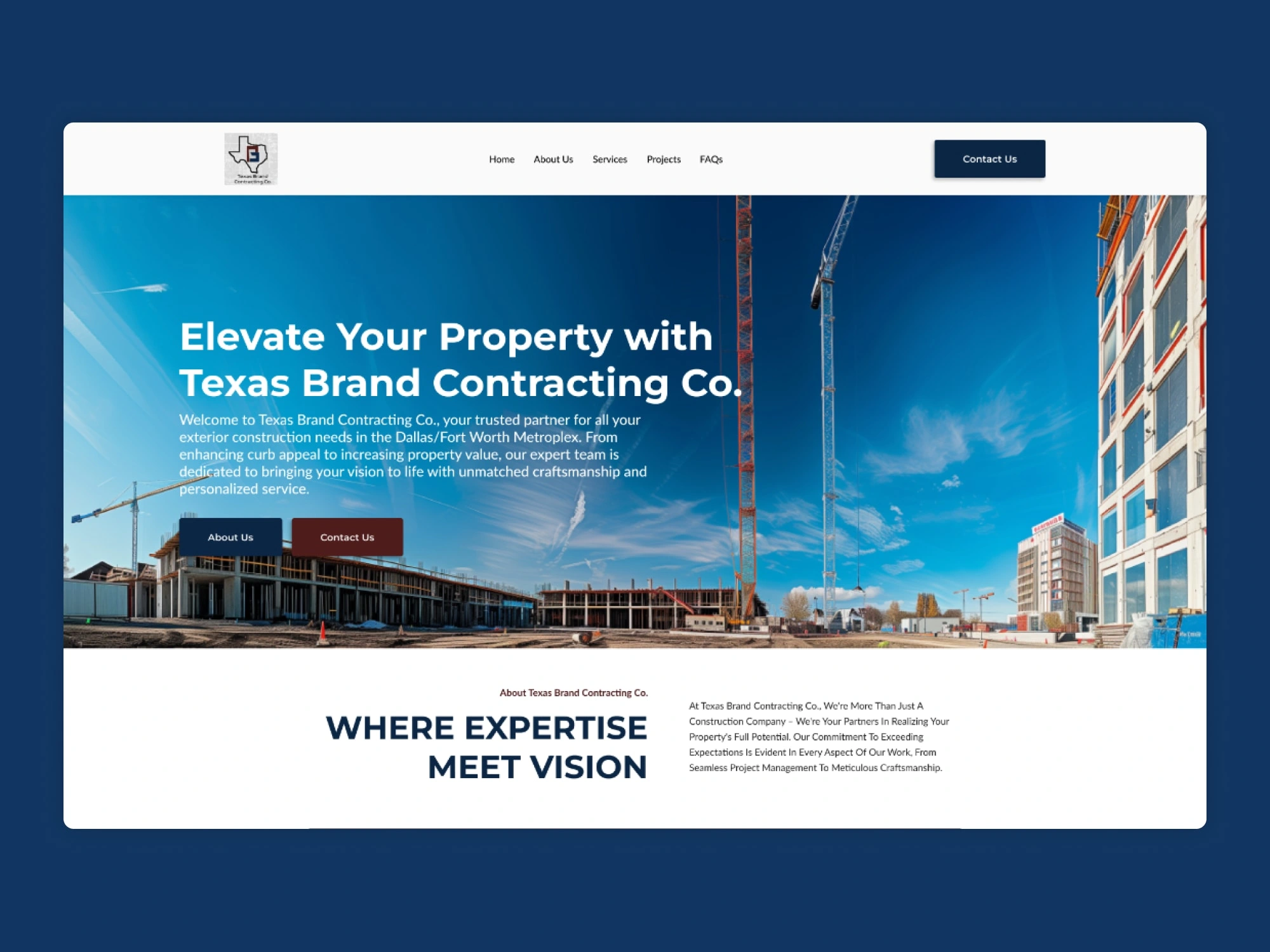 ๐ Power headline โ "Elevate Your Property with Texas Brand Contracting Co." โ speaks directly to property owners