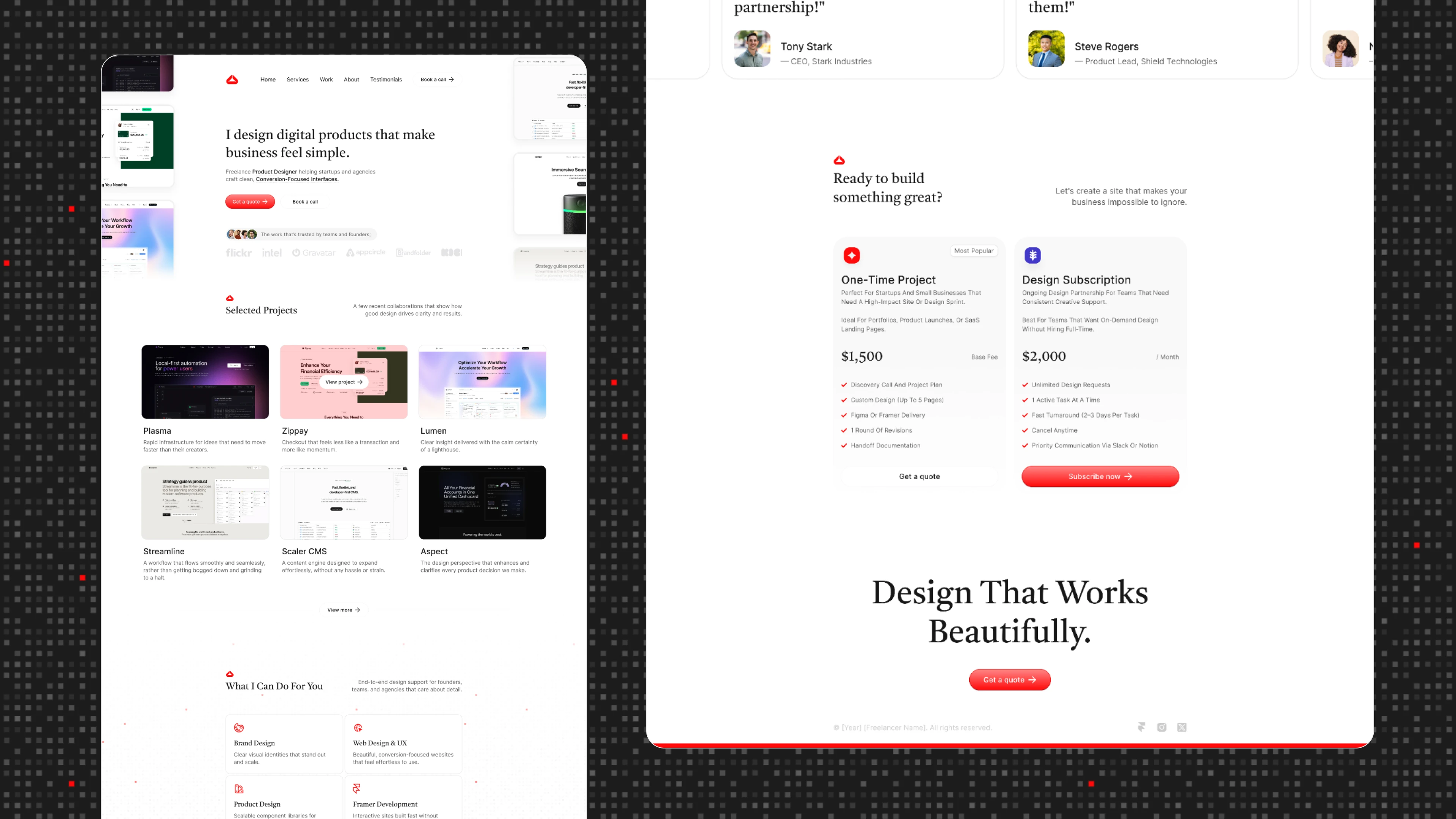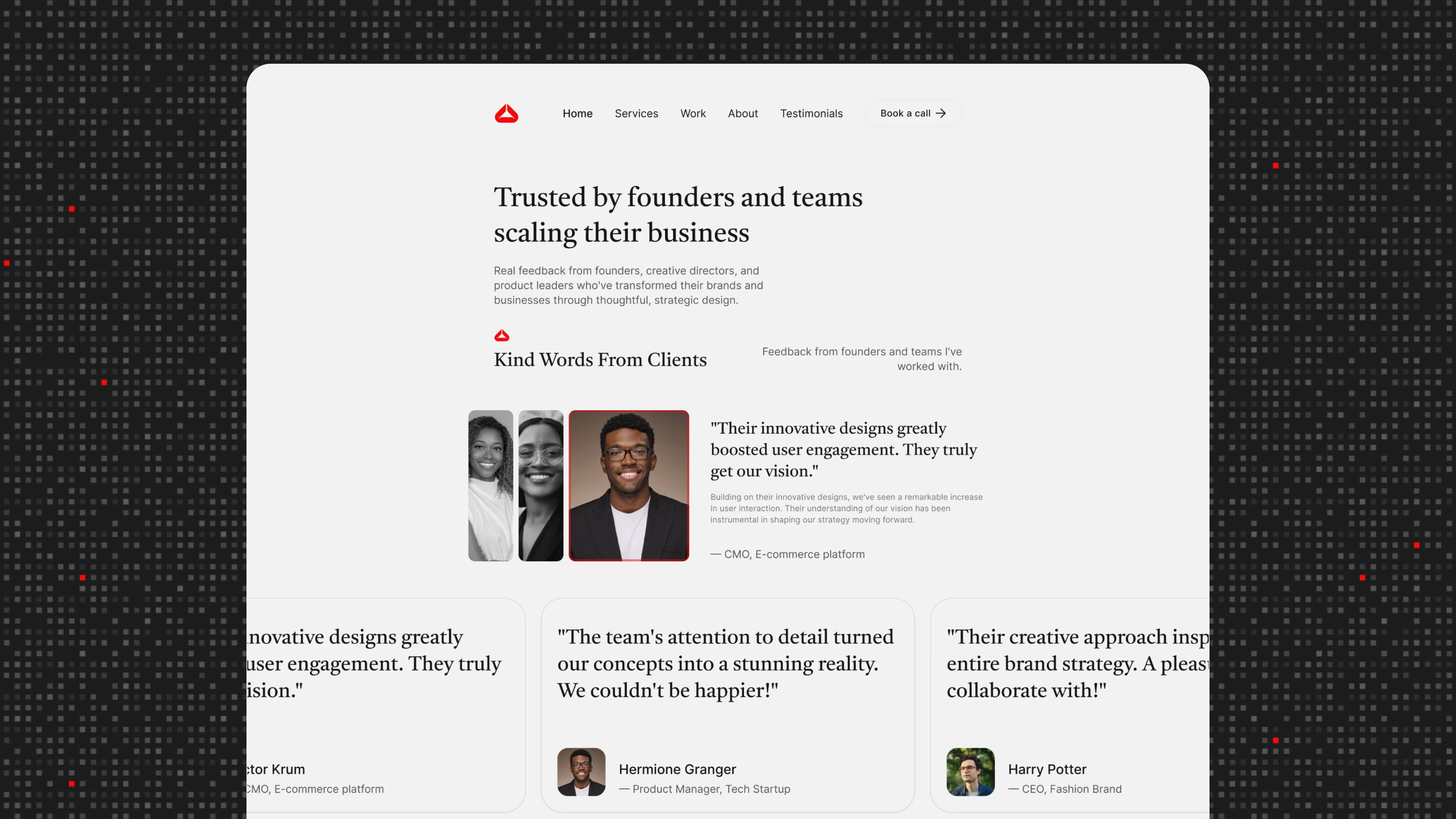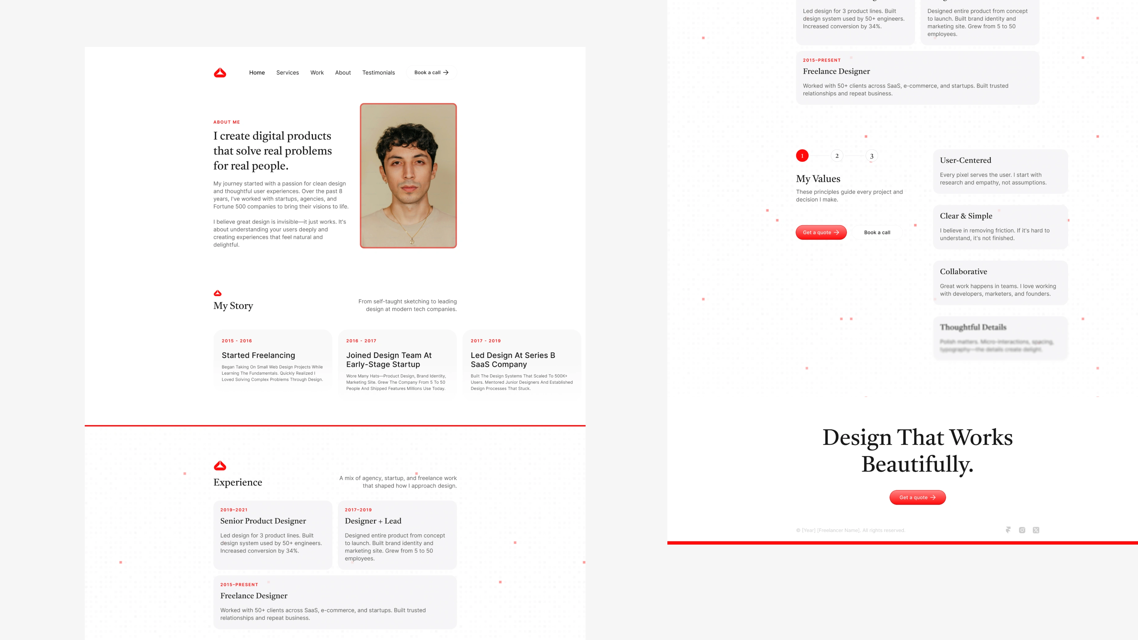 The site balances generous white space, a neutral color palette, and a consistent rhythm across headings, body text, and imagery. Each section of the site is purpose-built to help visitors quickly understand the client’s background, values, services, and projects. Rather than relying on heavy visuals, the design uses subtle cues to guide the user through the narrative — clean grids, focused typography, and deliberate spacing.