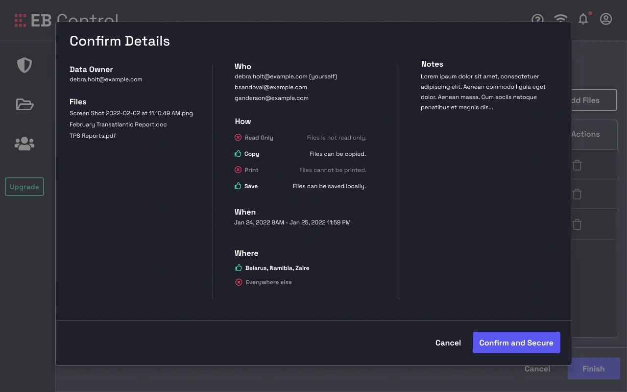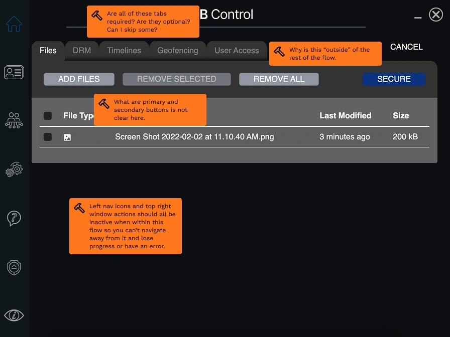 Through collaboration with their technical and product leadership and design iteration, we arrived at a final product that met user needs and provided unique functionality in the file sharing and security space.