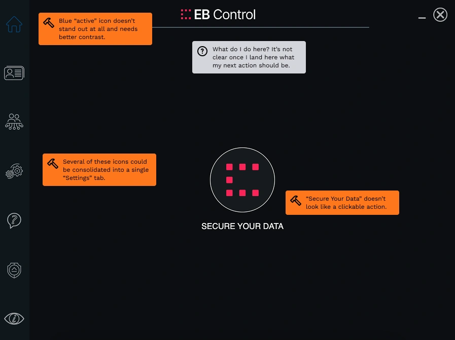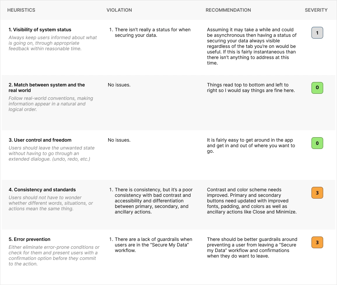 I started by performing a rapid heuristic analysis of their current app, rating issues by severity, and providing recommended solutions.