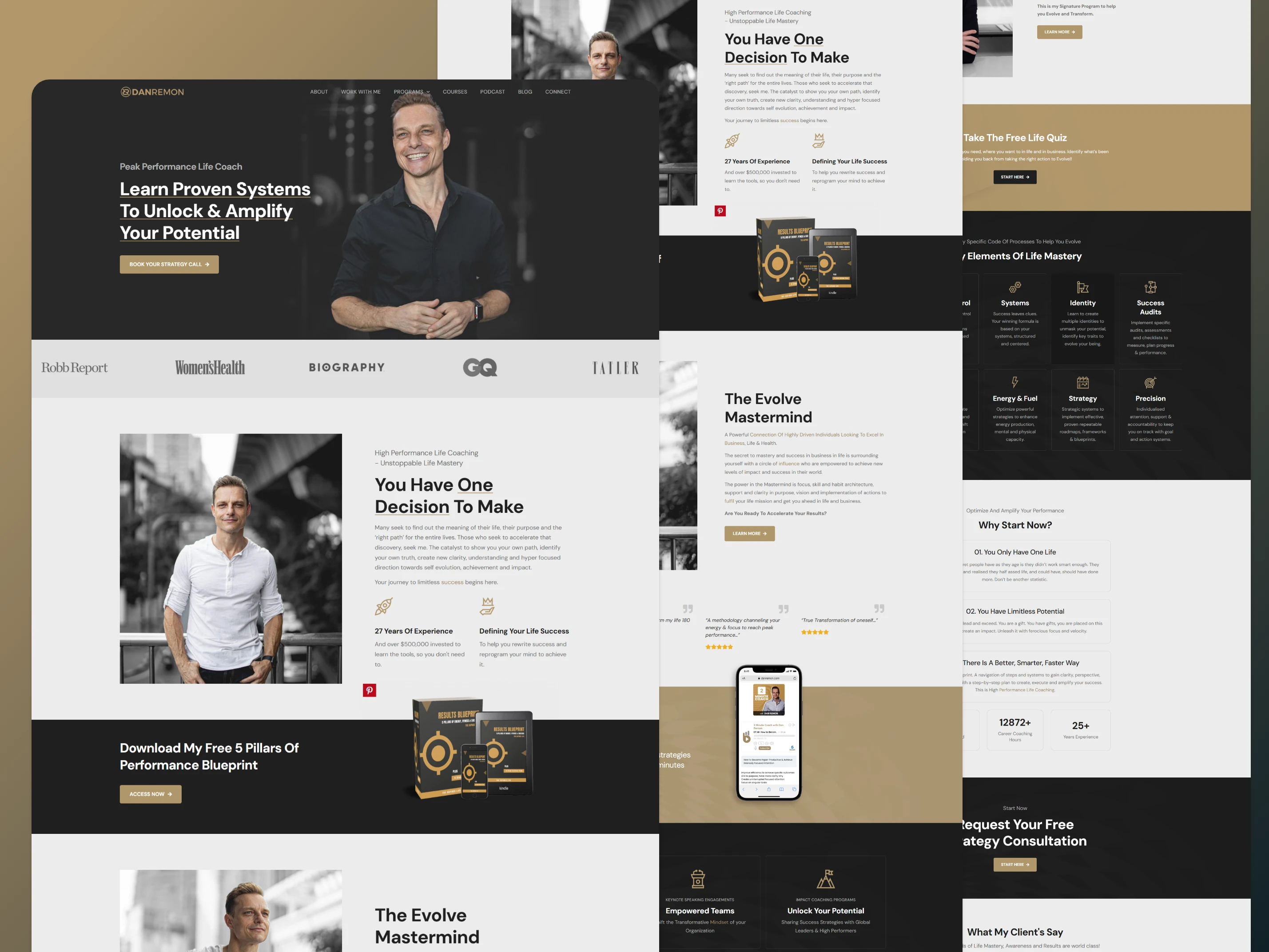 Dan Remon approached me with the goal of creating a professional life coaching website. He wanted to offer multiple online courses, but he had no clear idea about website structure, branding, or content direction.