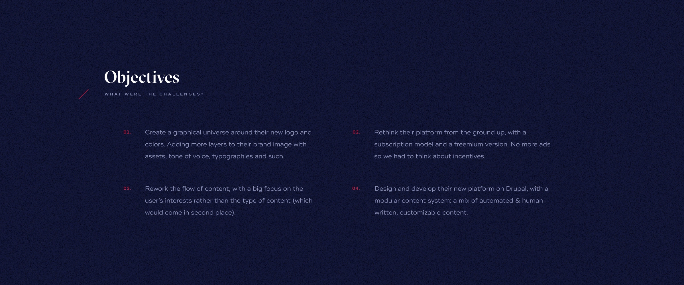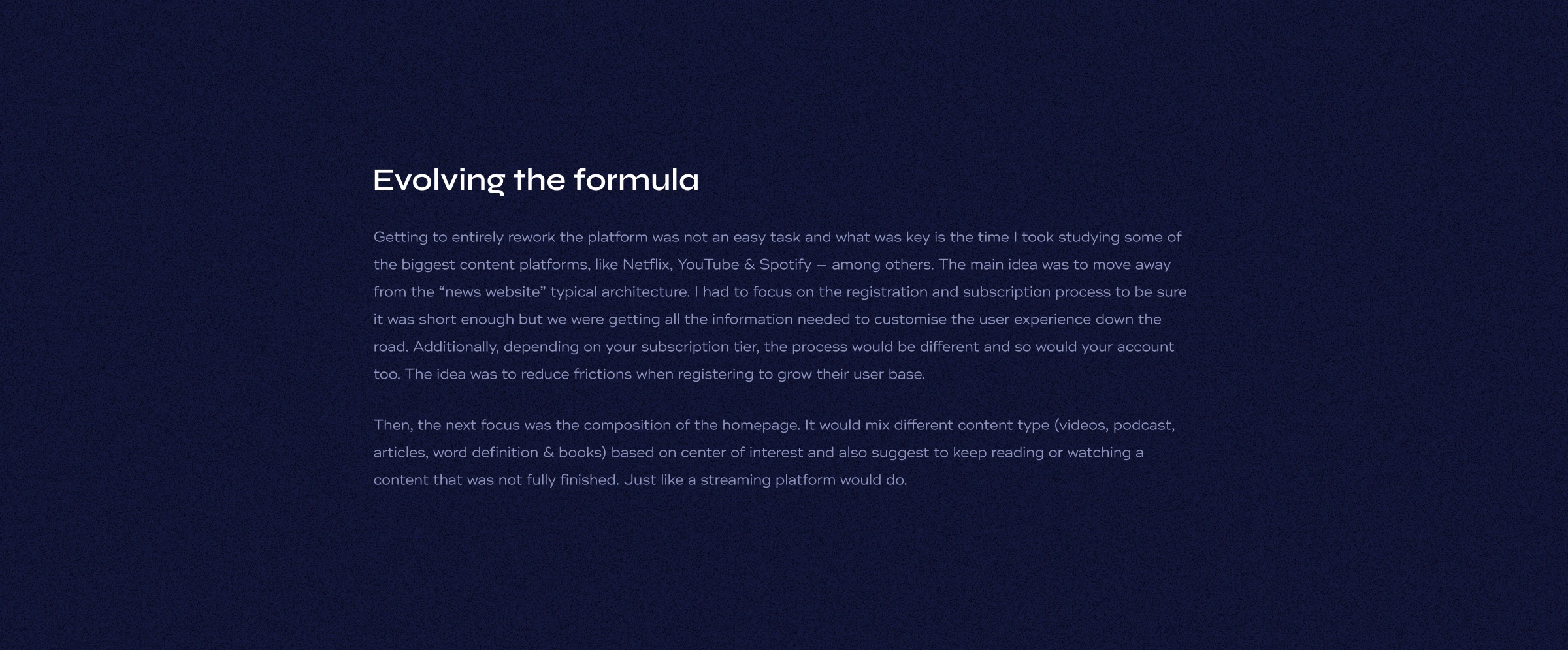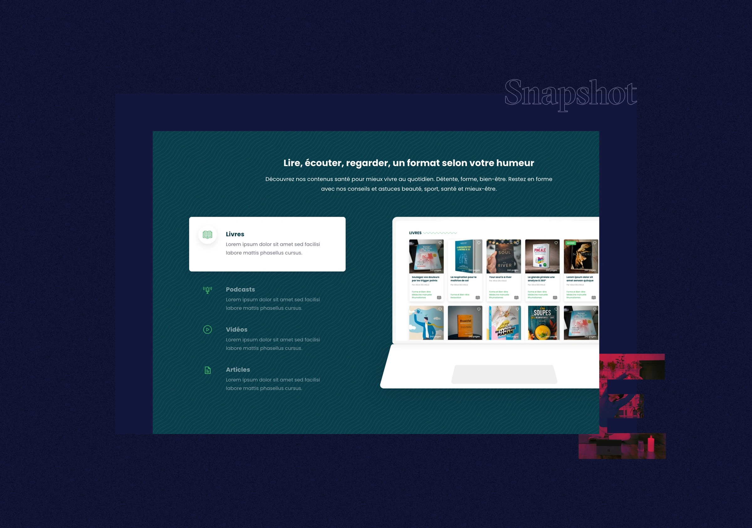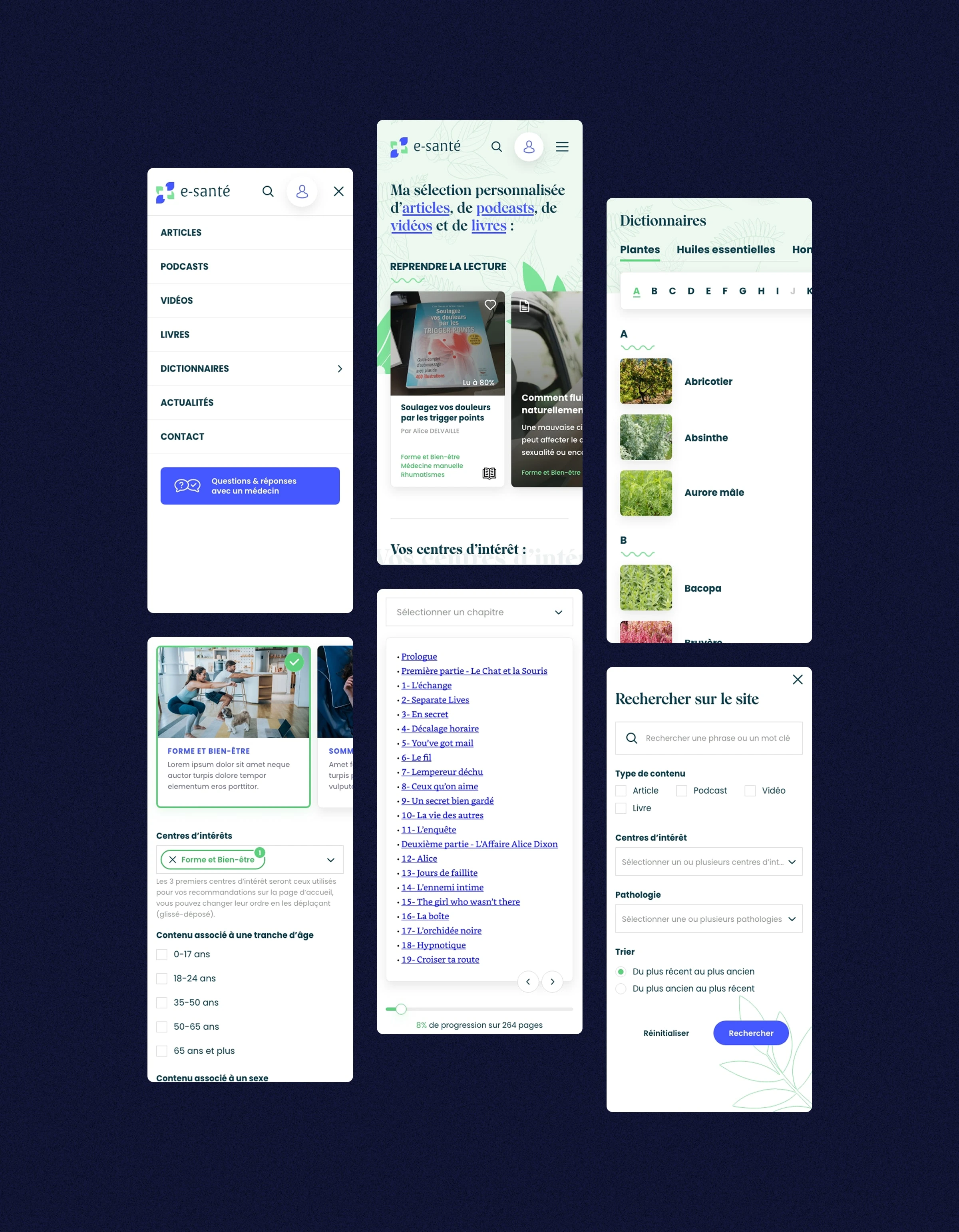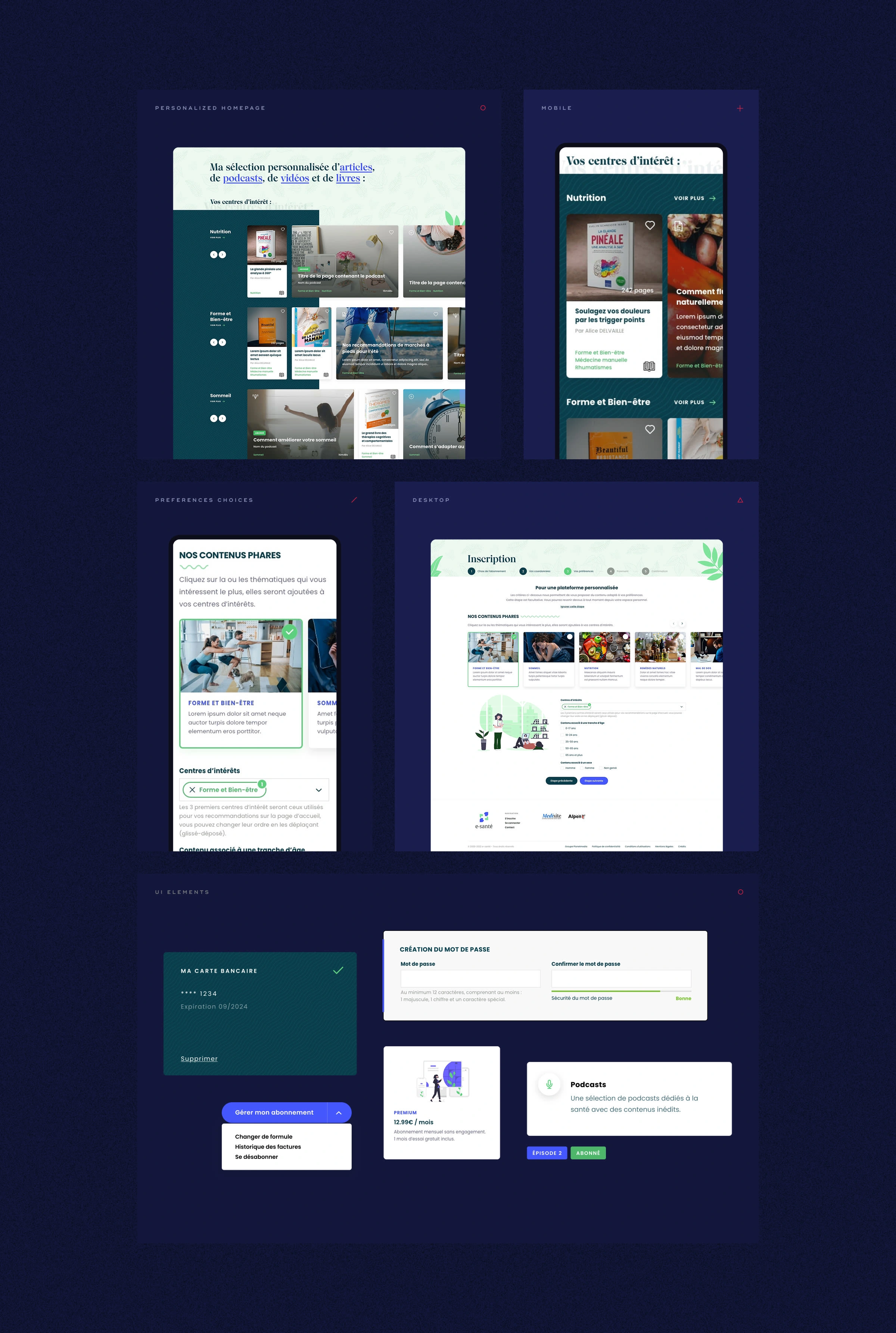 Transforming an health & wellness informational website into a content platform focused on users' interests. A catalog of news, videos, podcasts, lives & books.