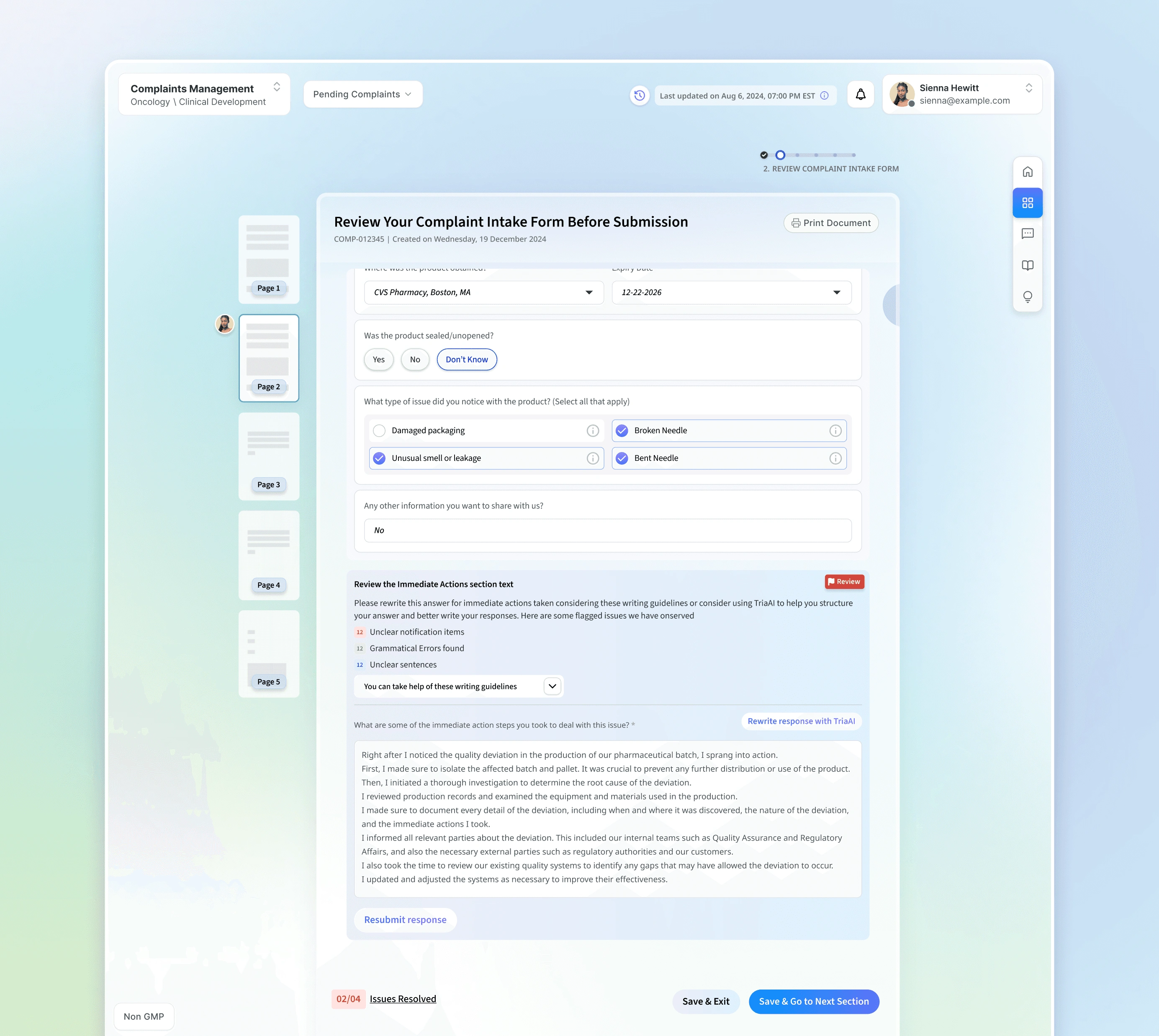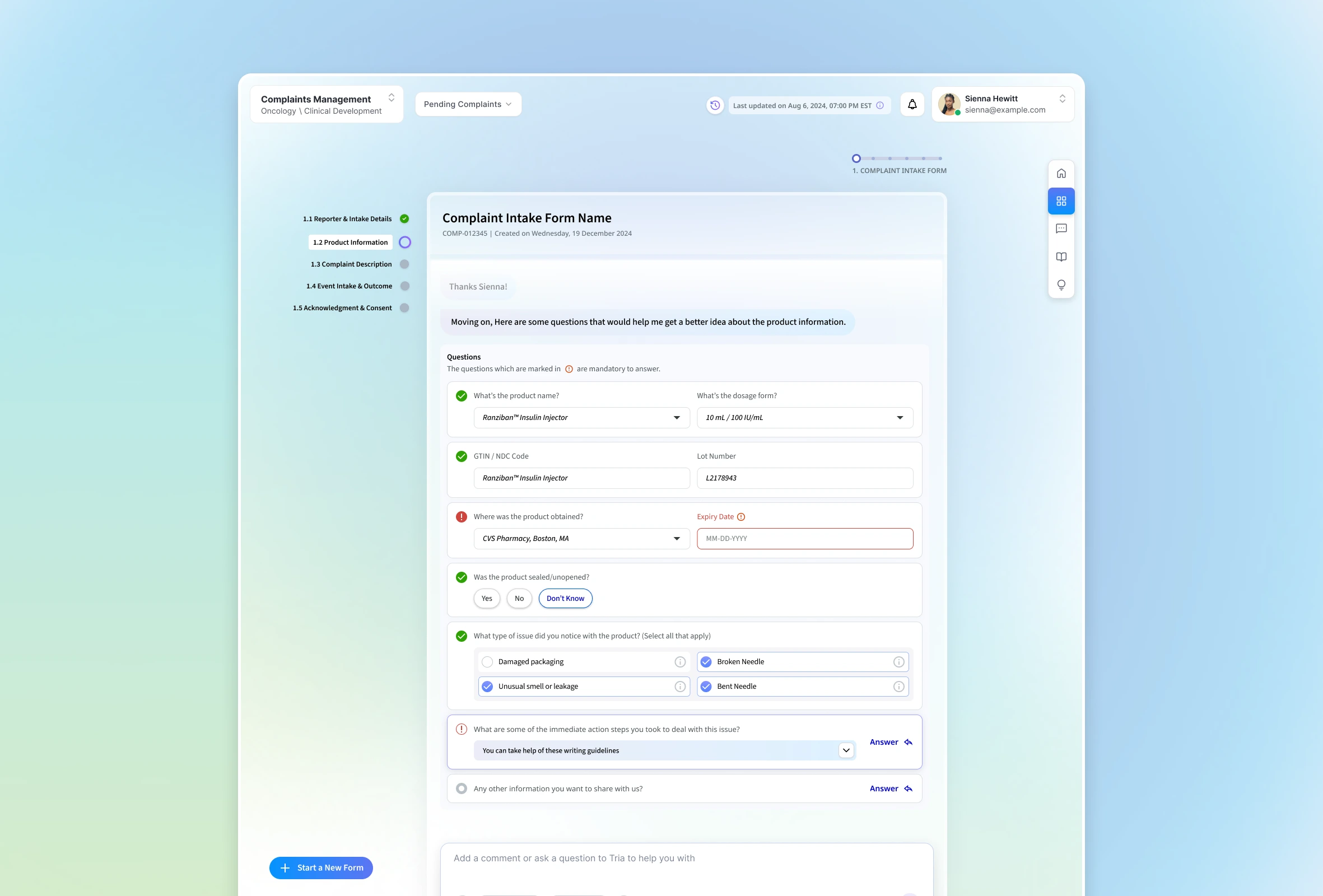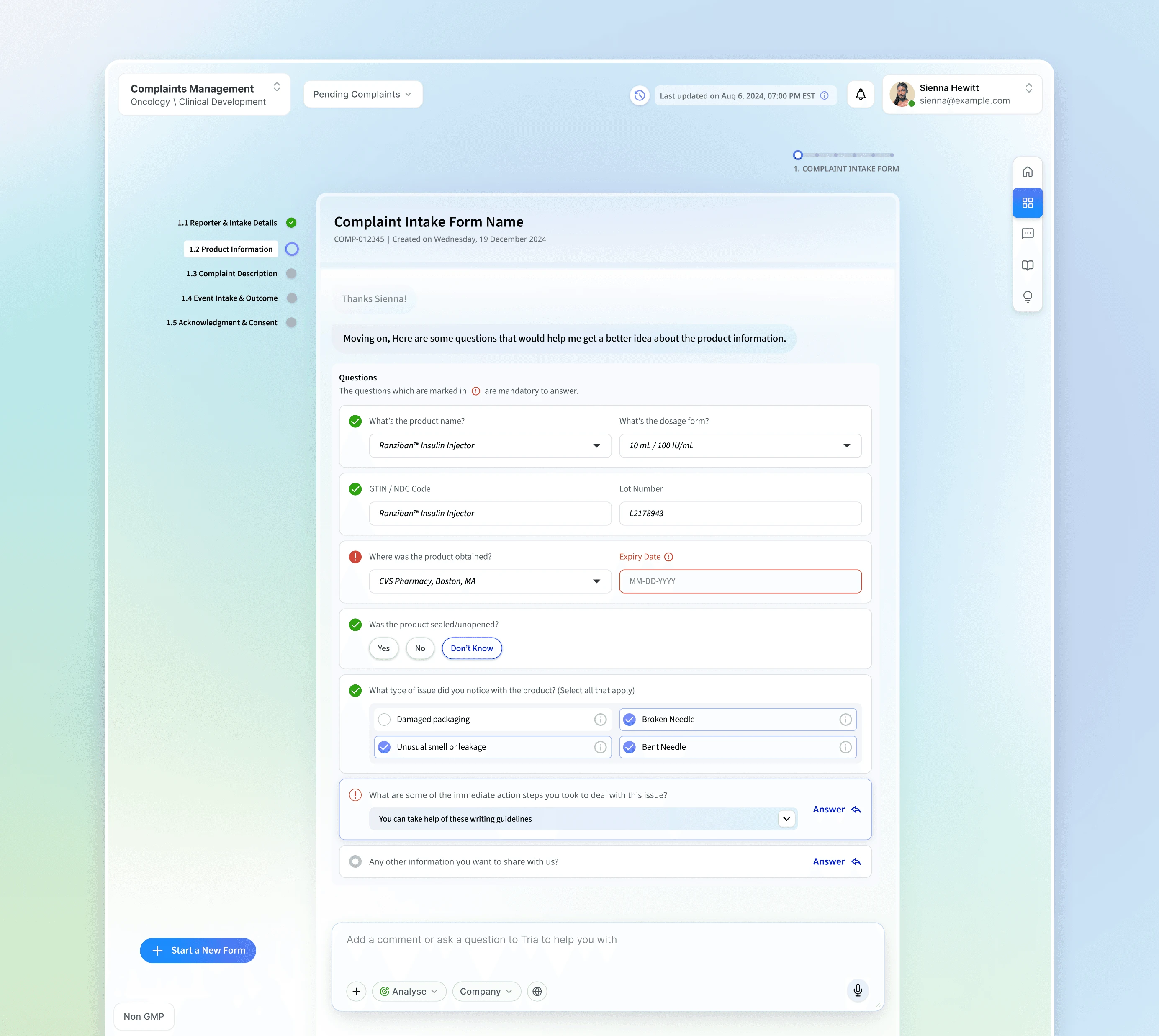 Complaints management in highly regulated manufacturing environments is inherently complex. Investigators navigate disconnected systems, process large volumes of unstructured data, and operate under strict compliance requirements—all while managing multiple investigations simultaneously.