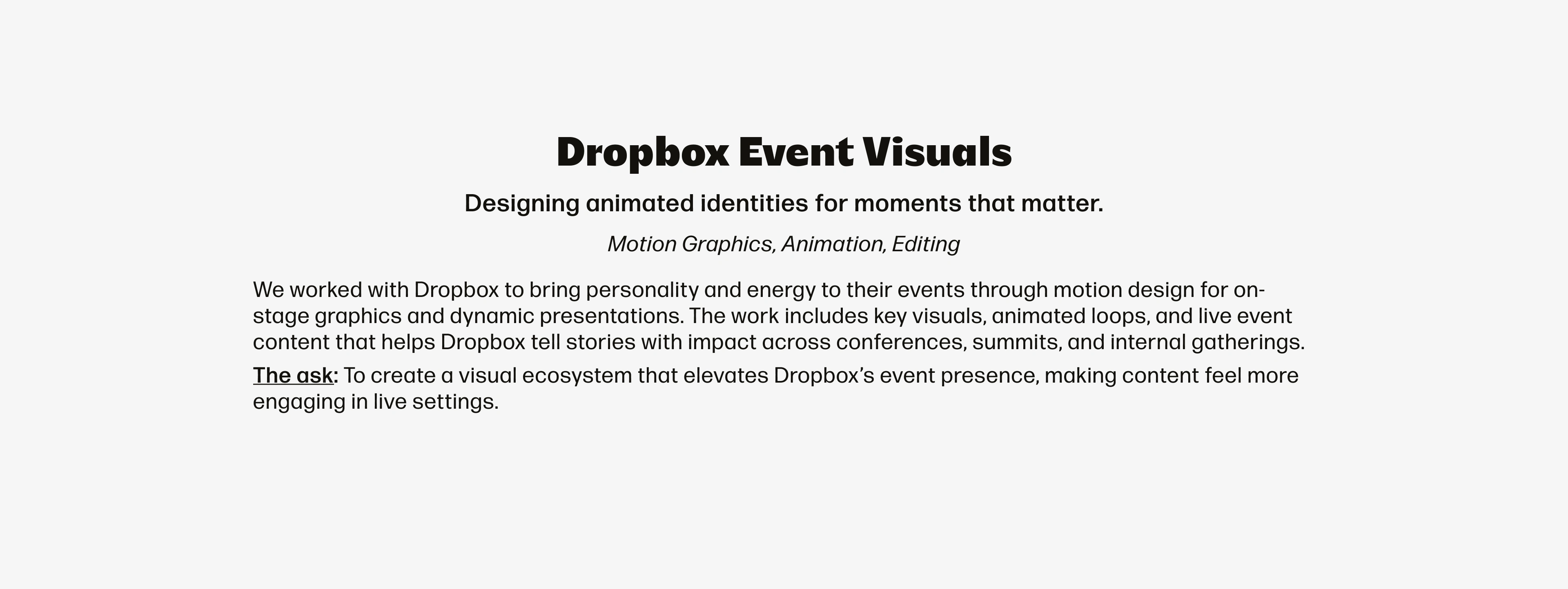 We created distinctive animated identities, including animated logos, patterns, and edited videos, that unified both digital and in-person experiences.