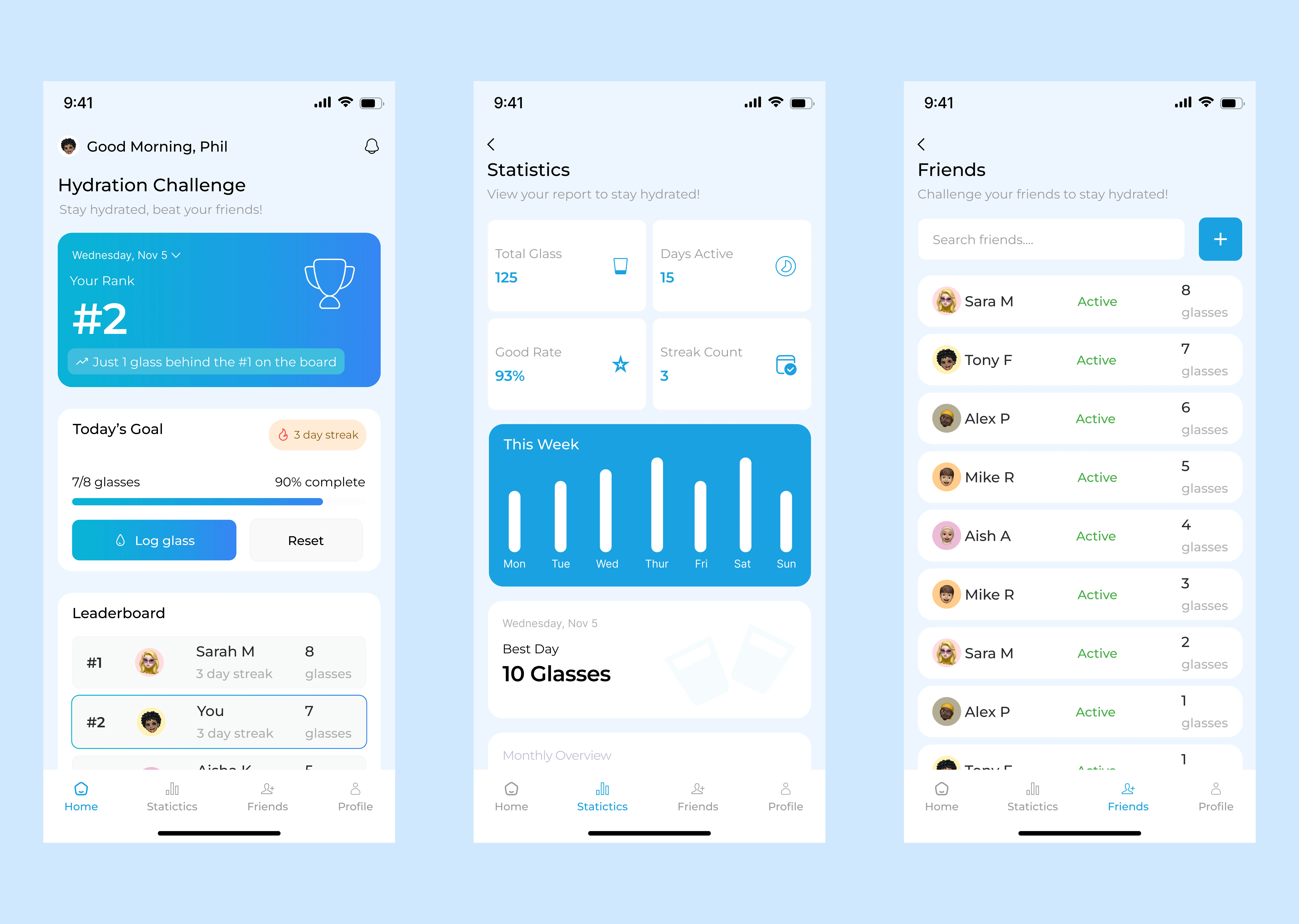 consistent hydration habits by creating friendly competition, tracking streaks,