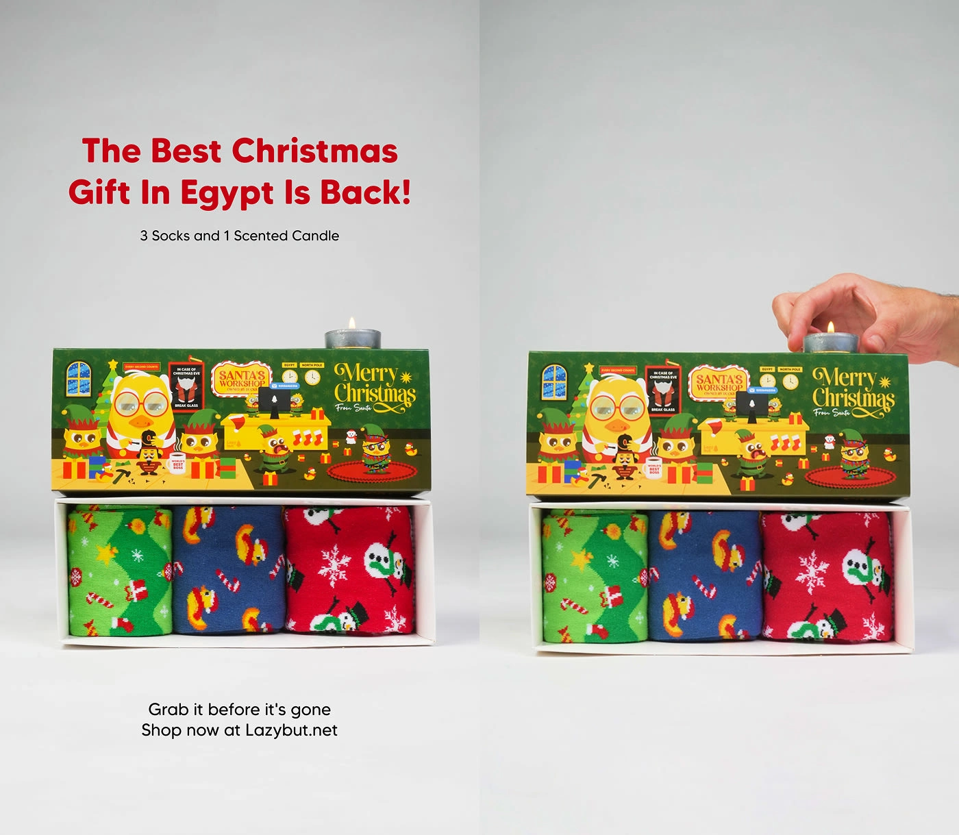 Last year, I couldn’t find a single nice Christmas bag in Egypt. So I made one. with the Lazybut logo as the Egyptian Branch.