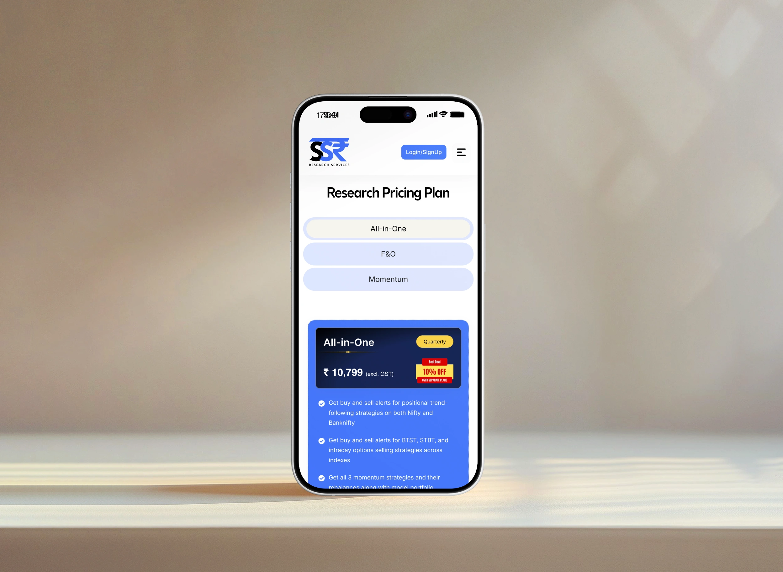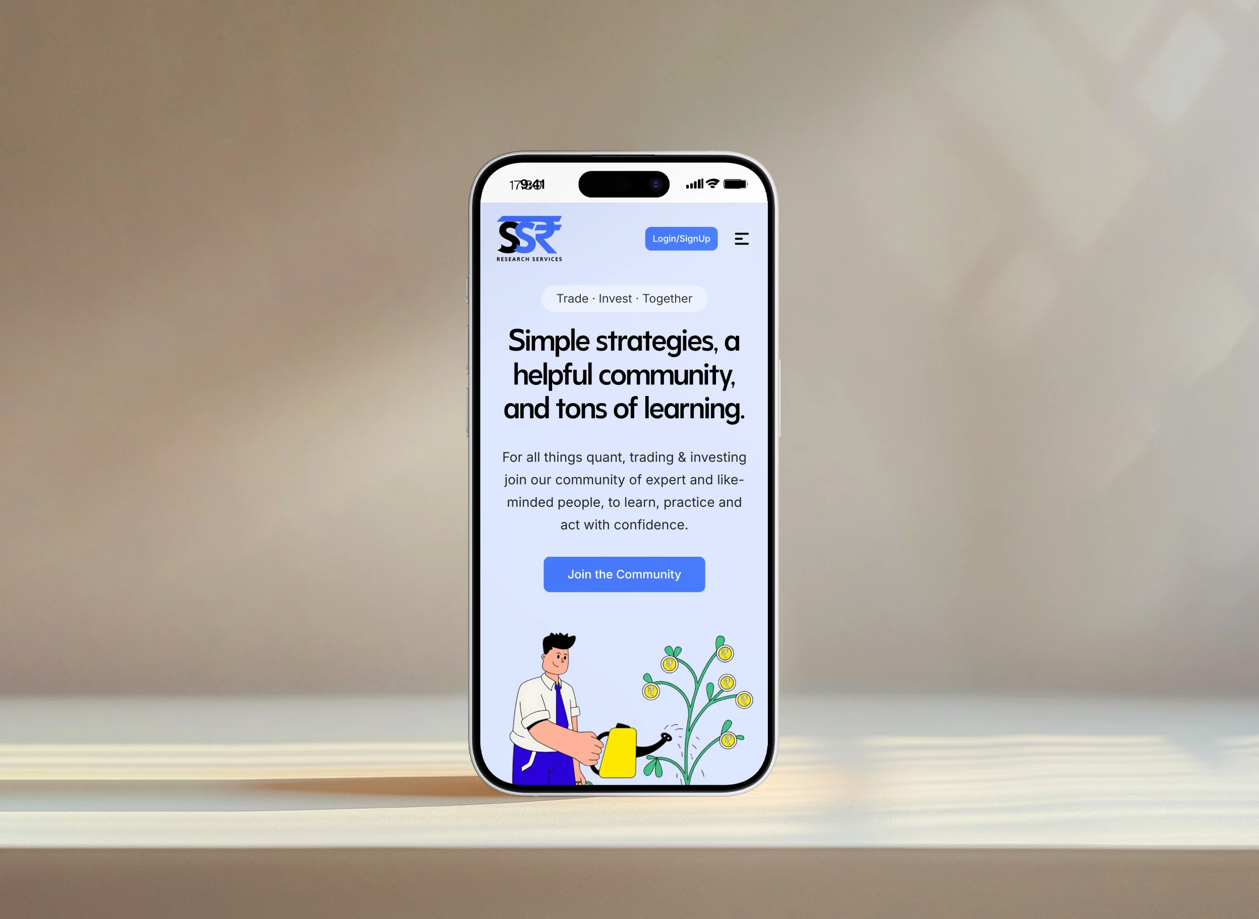 We had the opportunity to redesign the digital presence of SSR Research, a SEBI-Registered Analyst with a strong community of disciplined, data-driven investors. Our goal was to blend modern design, clean UI, and a community-first experience into a platform that feels premium yet familiar.