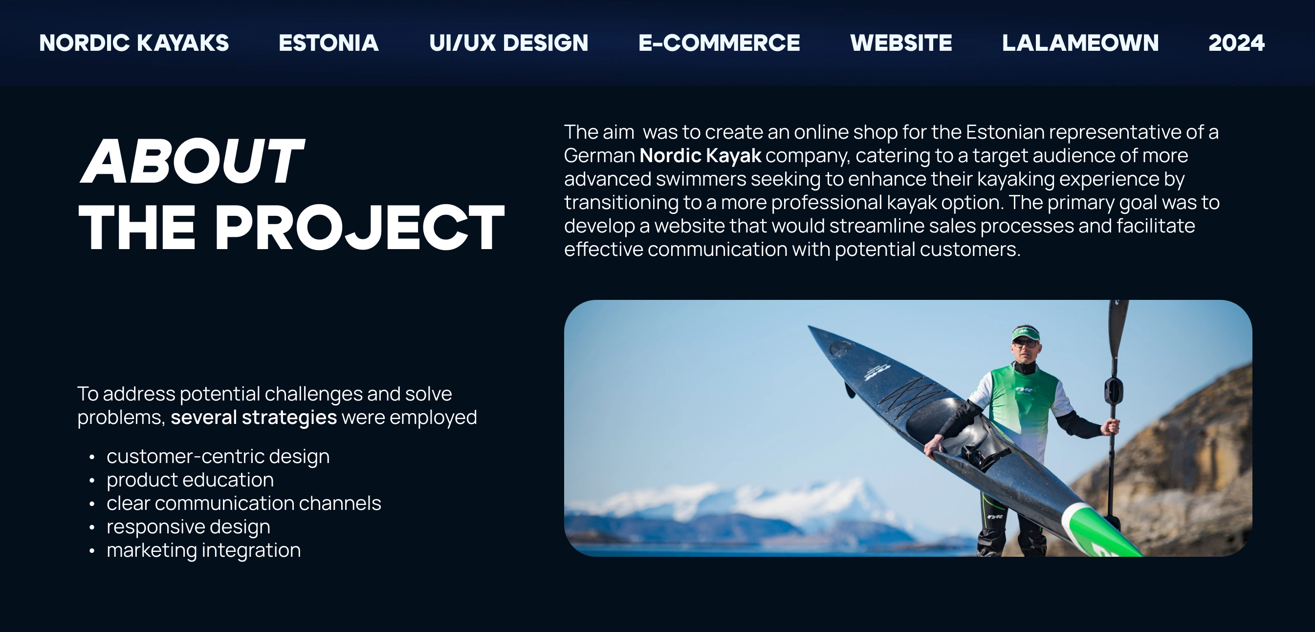 Online store for an Estonian rep of a German kayak brand — built to boost sales and connect with experienced paddlers seeking pro-level comfort.