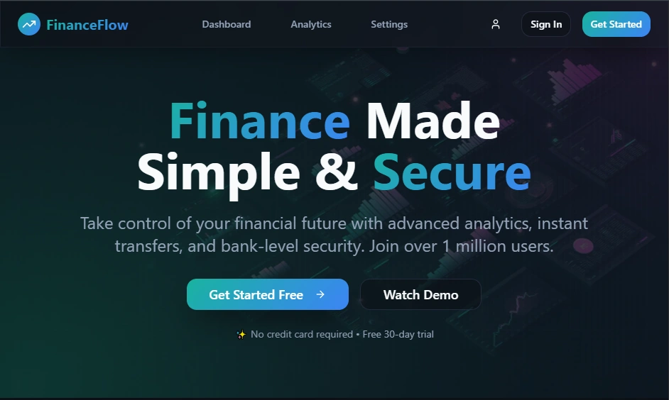 Finance Flow is a fintech platform with real-time analytics, secure transactions, and an intuitive dashboard for effortless money management.