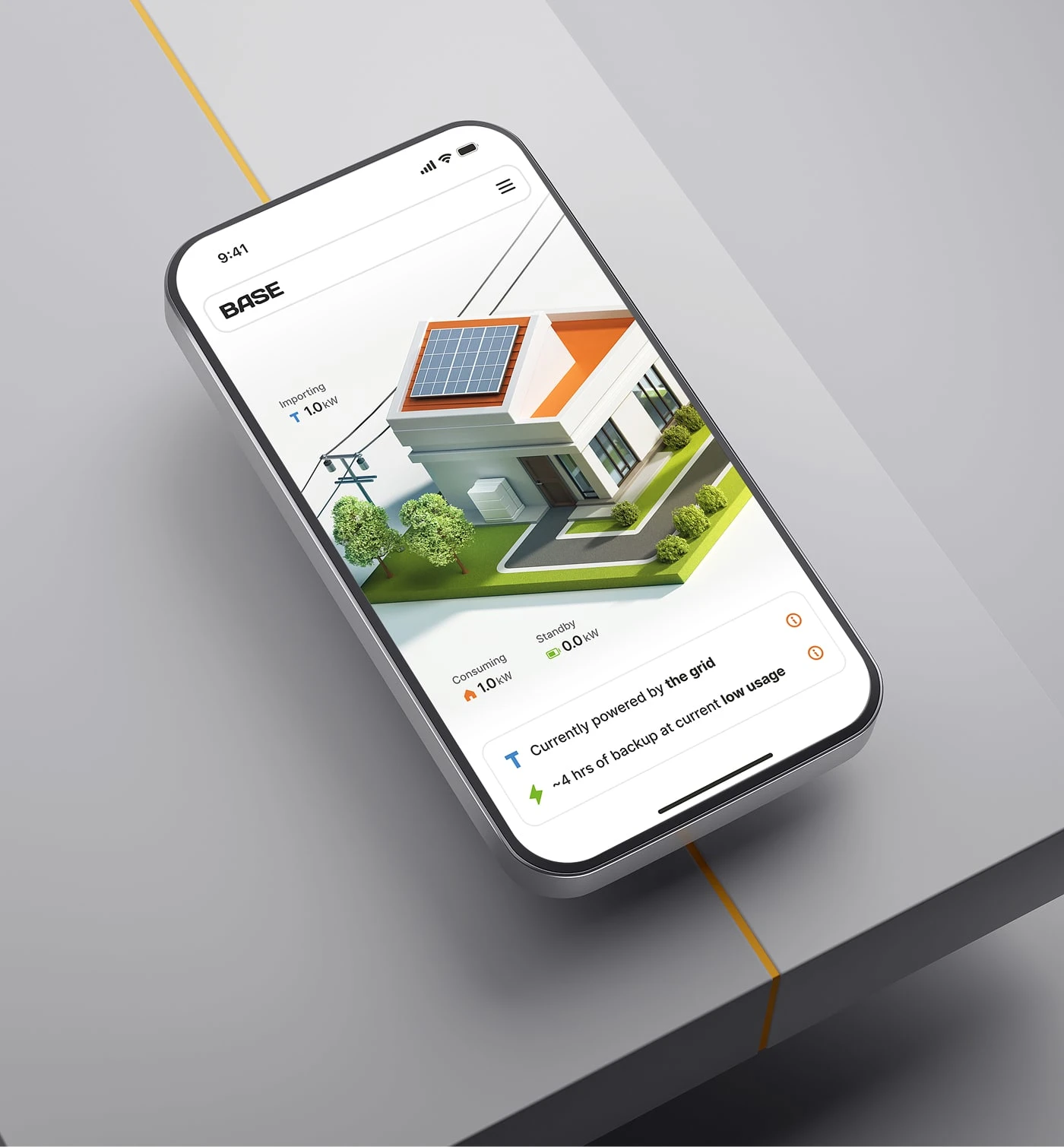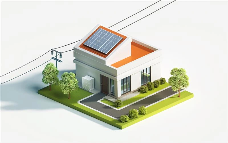 3D illustration work for an energy provider in the US - stylized model of a house connected to the grid and backed up by battery system.