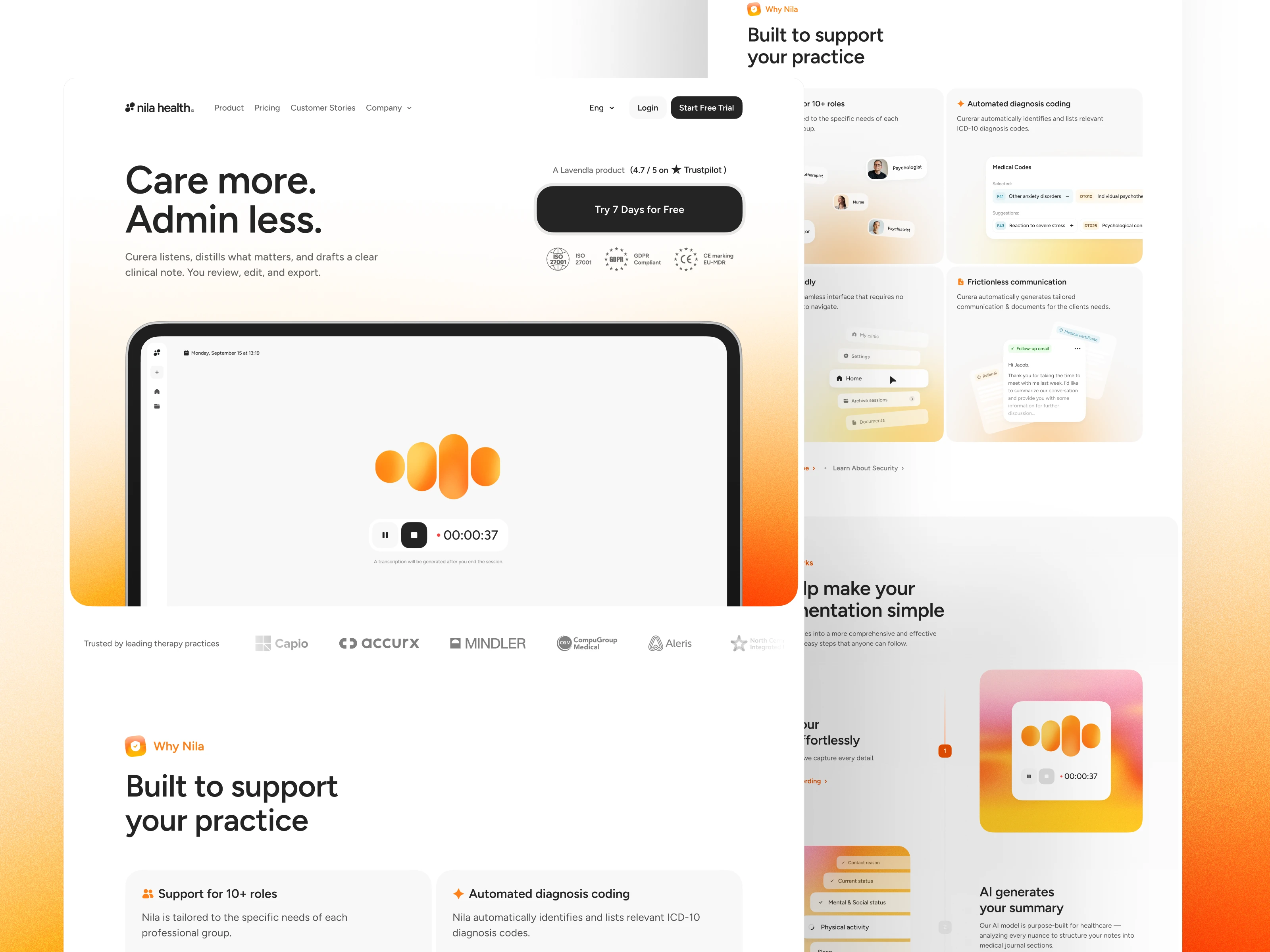 Nila Health is an AI clinical assistant that turns therapy and clinician sessions into accurate, structured notes in seconds. Their product gives care professionals time back by replacing manual documentation with secure, automated workflows.