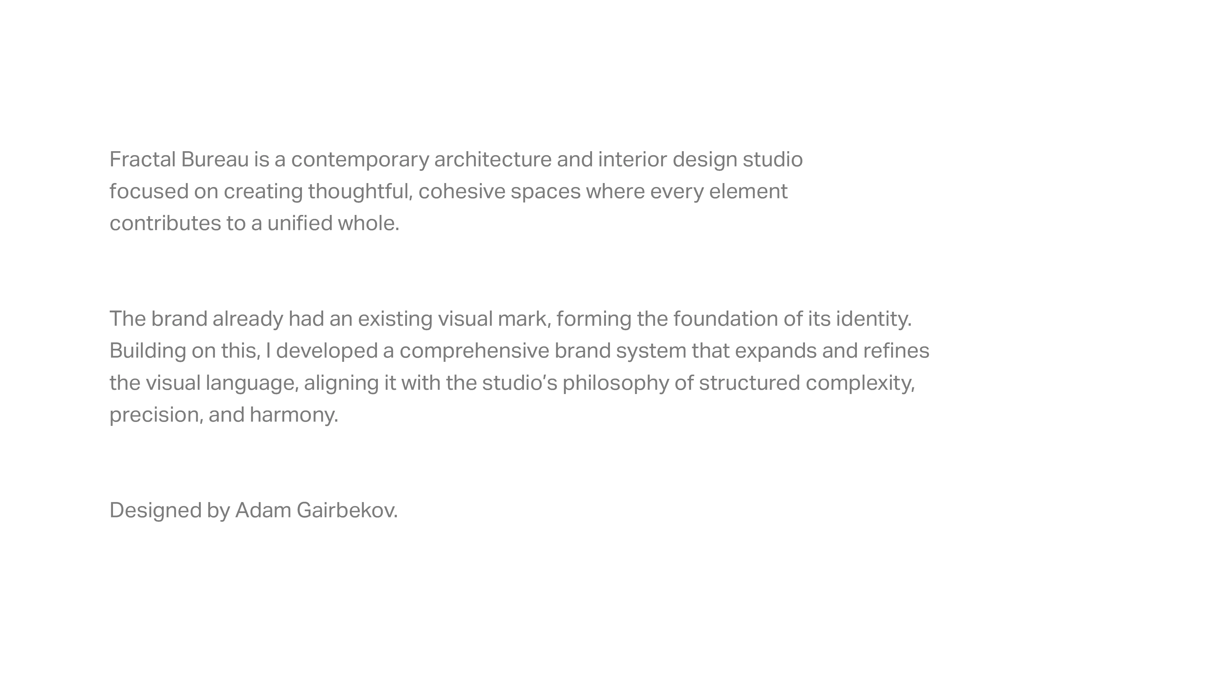A brand identity project for Fractal Bureau, contemporary architecture and interior design studio focused on creating cohesive, thoughtfully structured spaces.