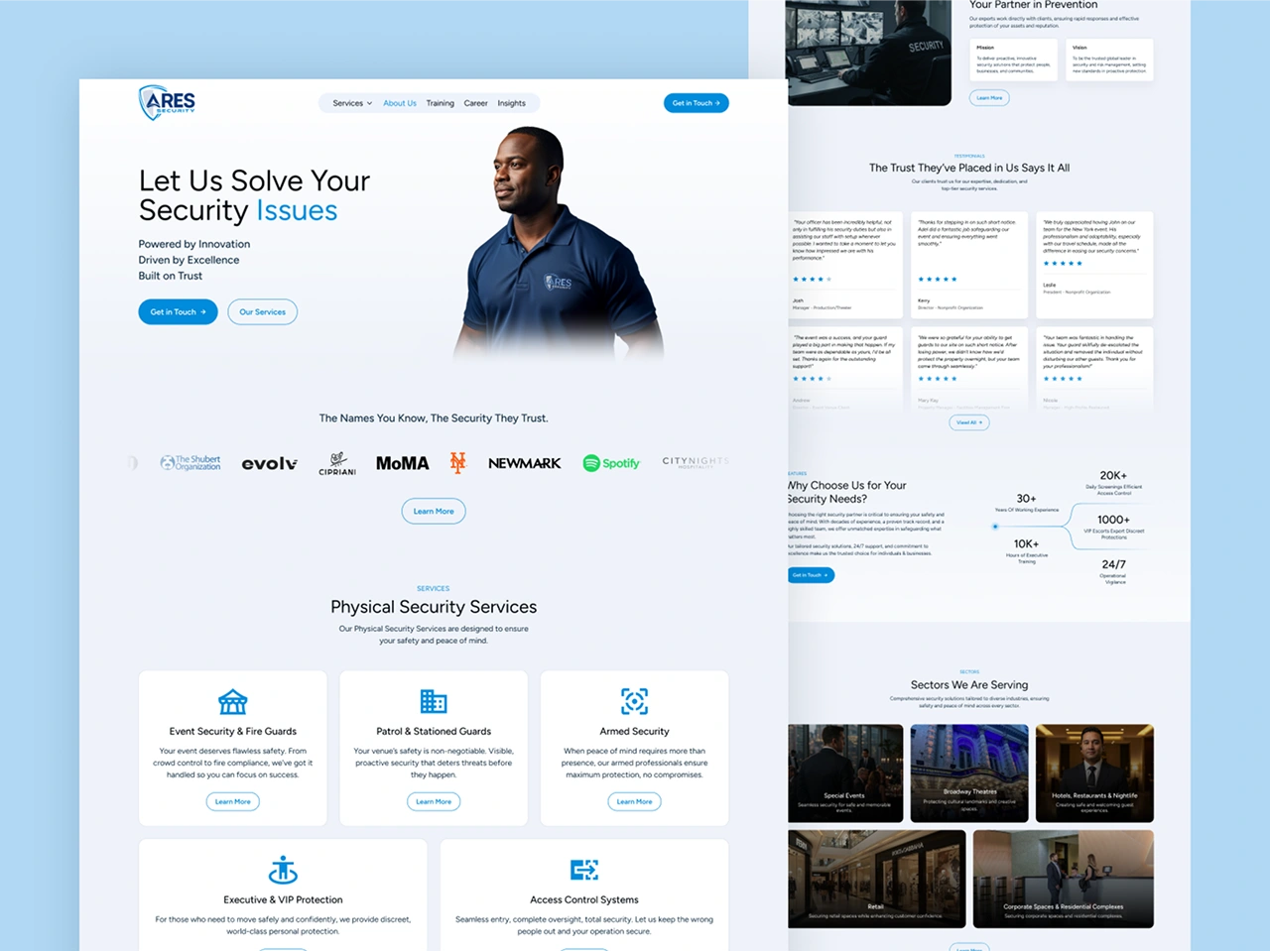 Ares Security provides security solutions for businesses. I was responsible for the rebranding and redesign of their website.