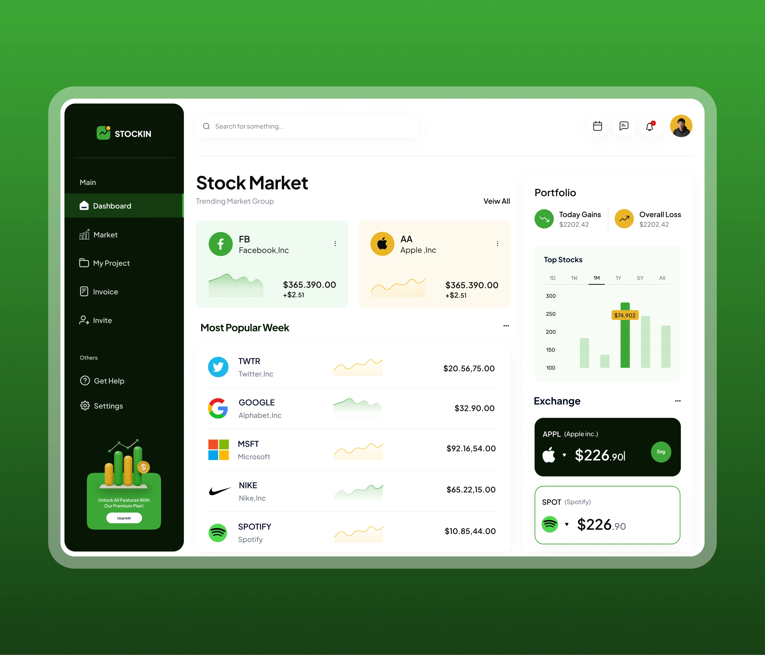 I designed a clean, data-driven stock dashboard helping users track portfolios, spot trends, and move from market overview to clear, confident decisions.