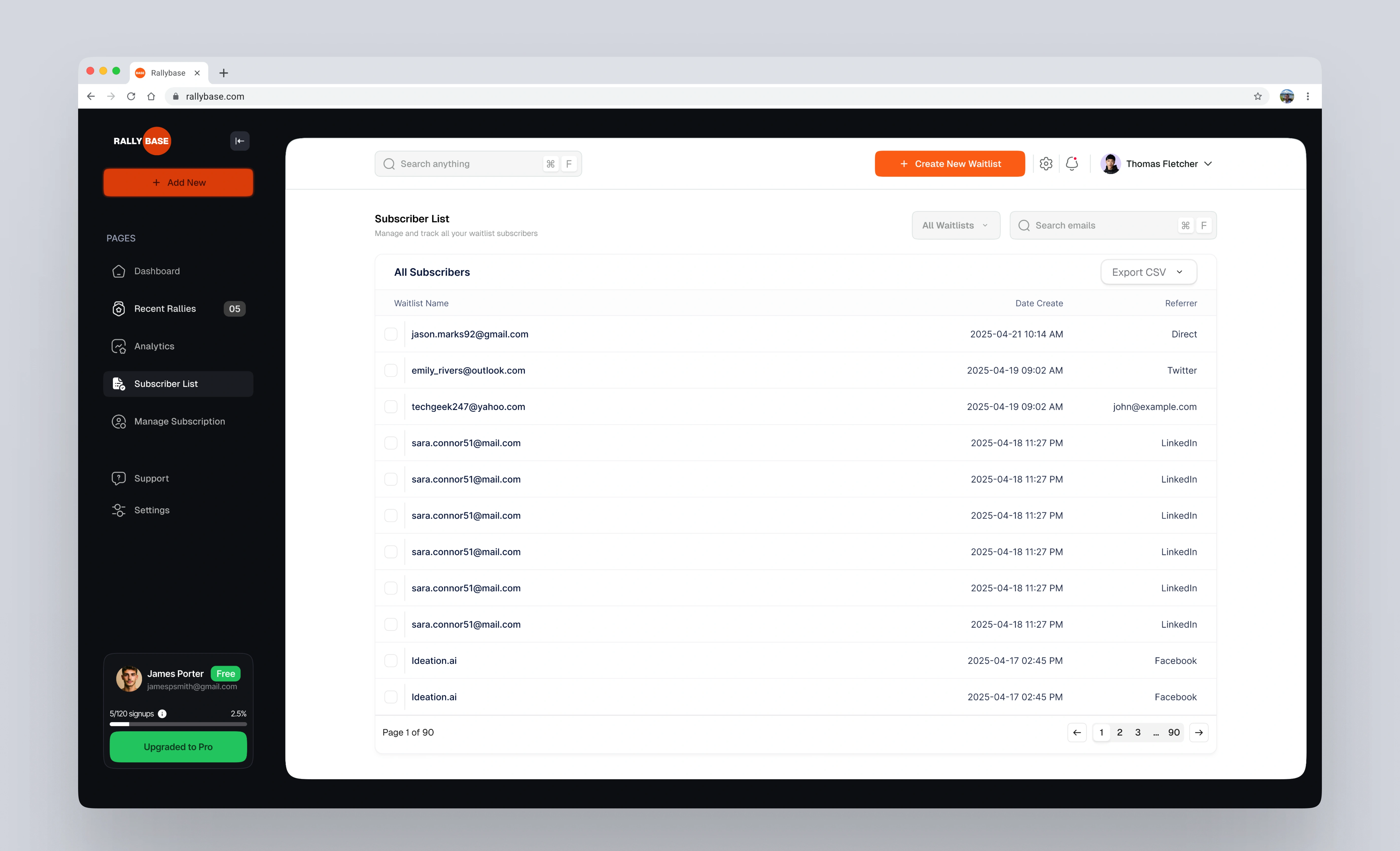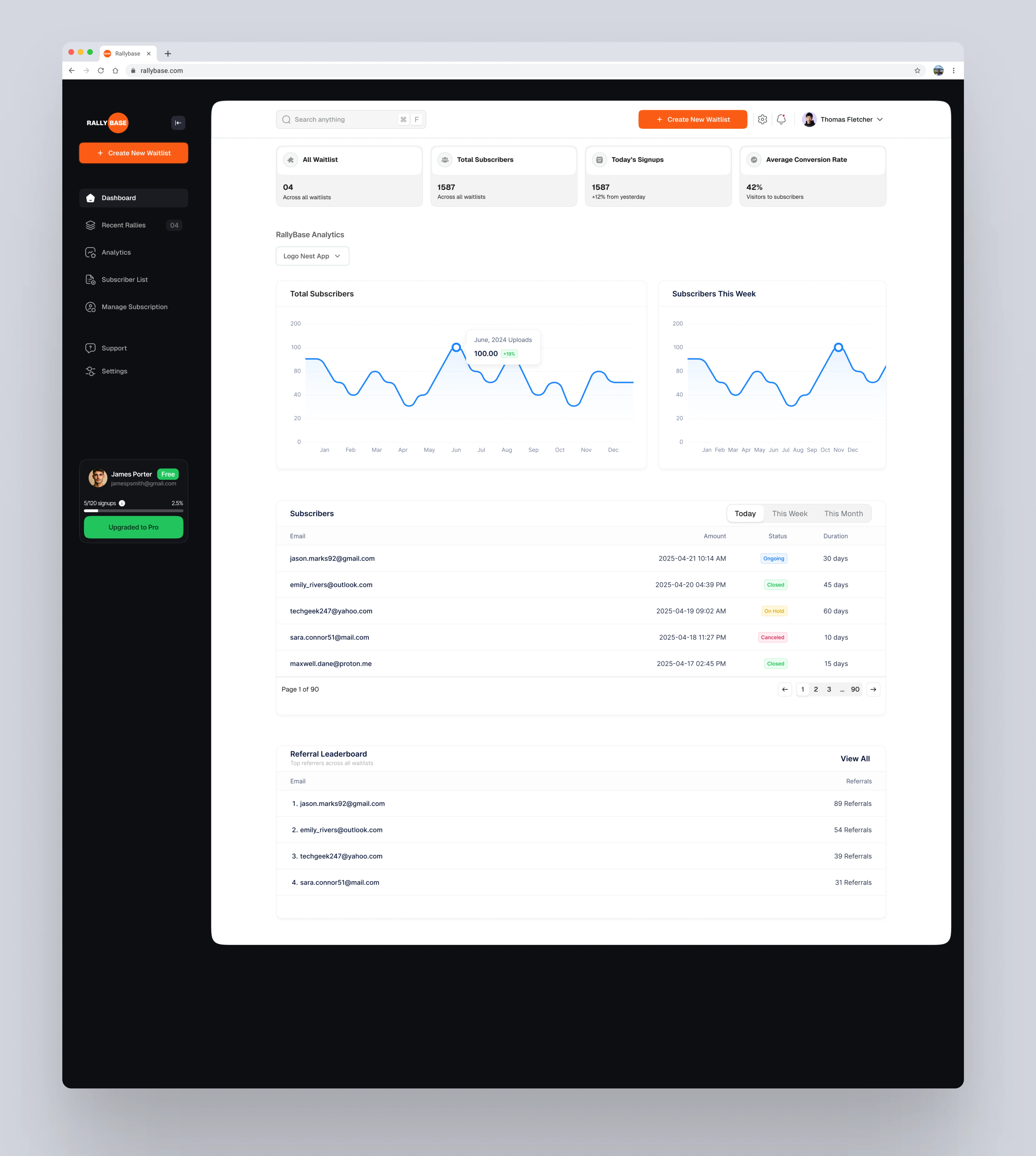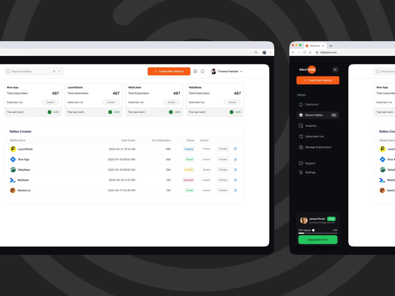 Rallybase is an all-in-one platform for waitlist creation, subscriber management, and email marketing. With built-in analytics and a simple, efficient design.