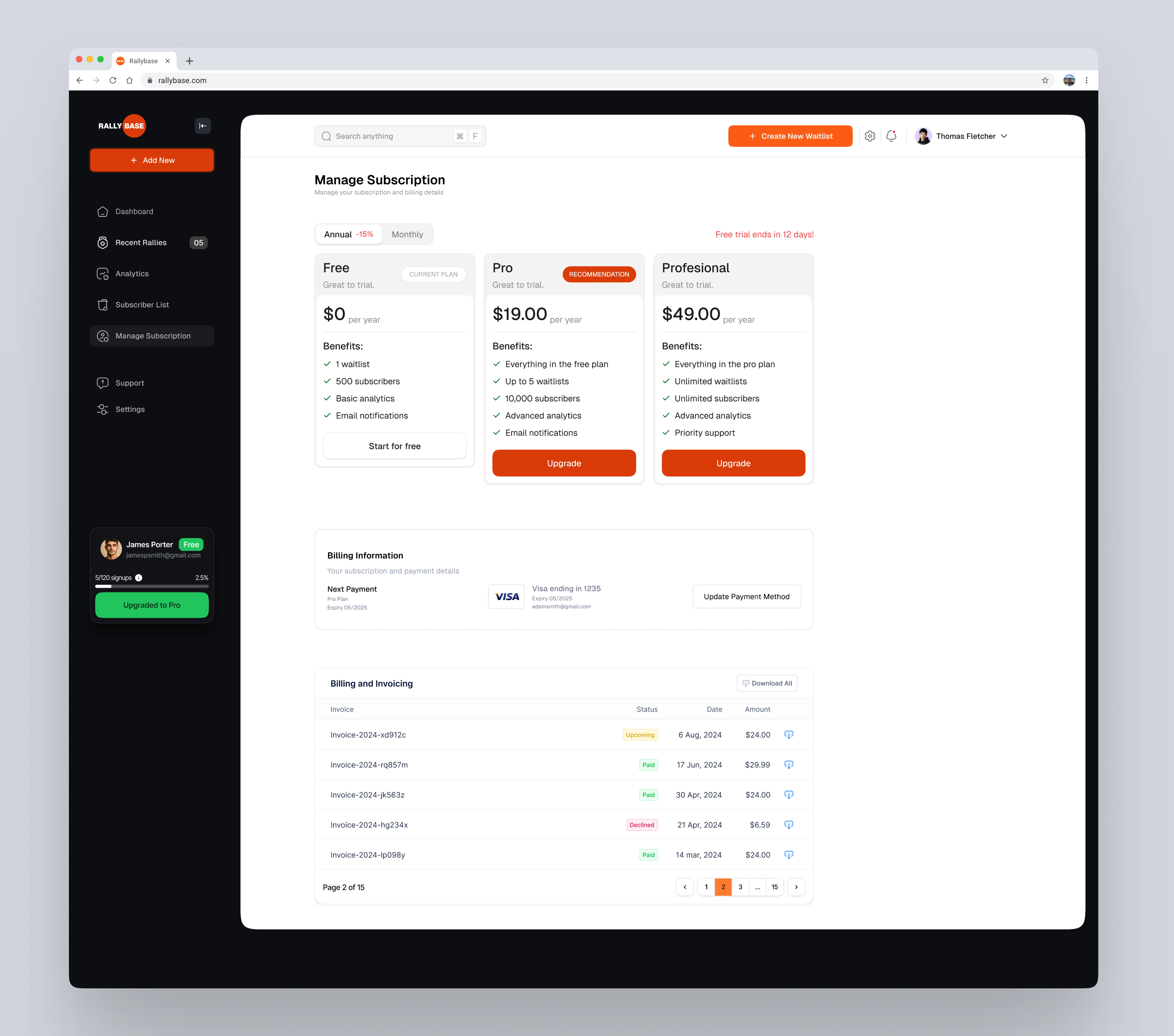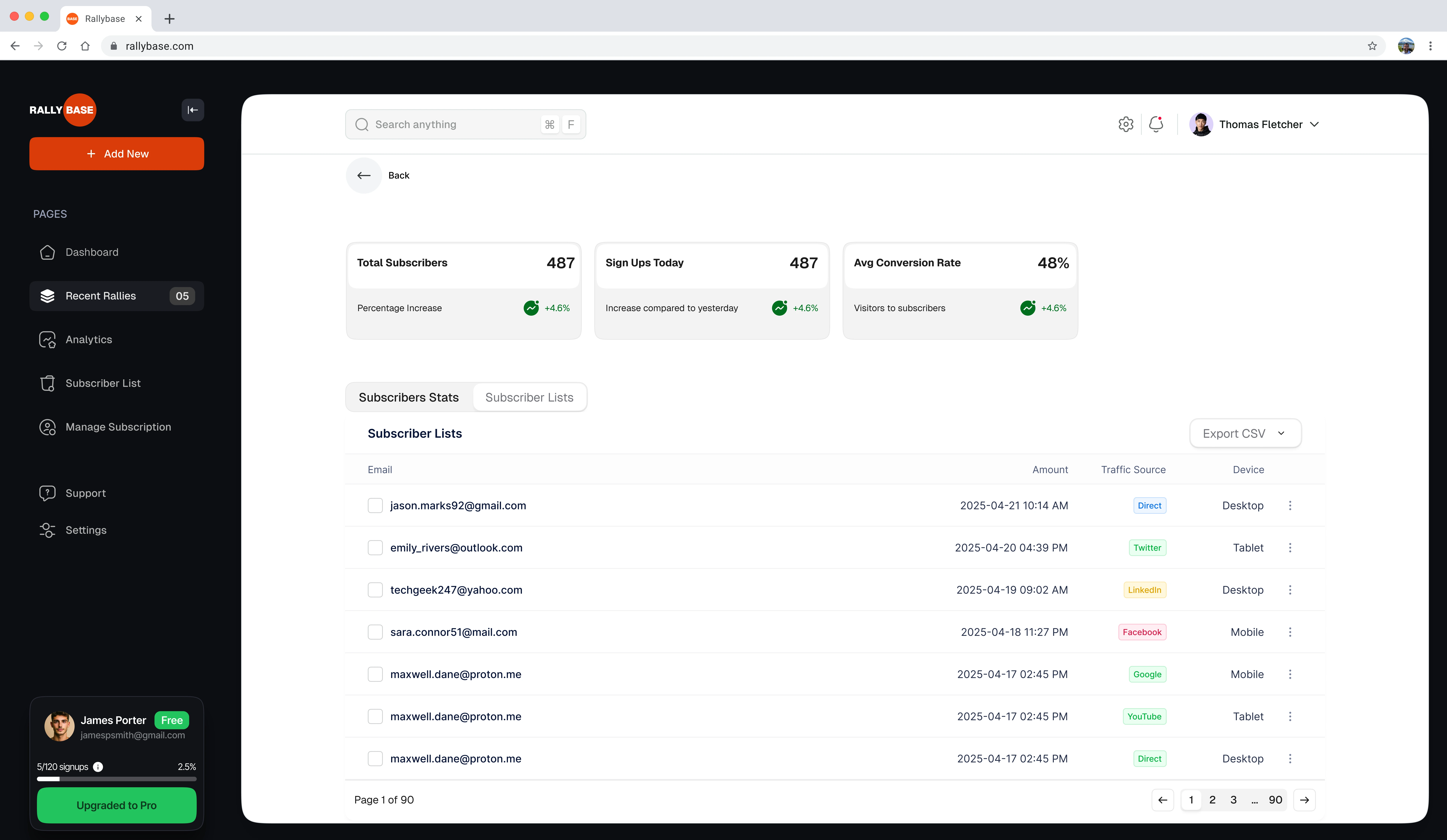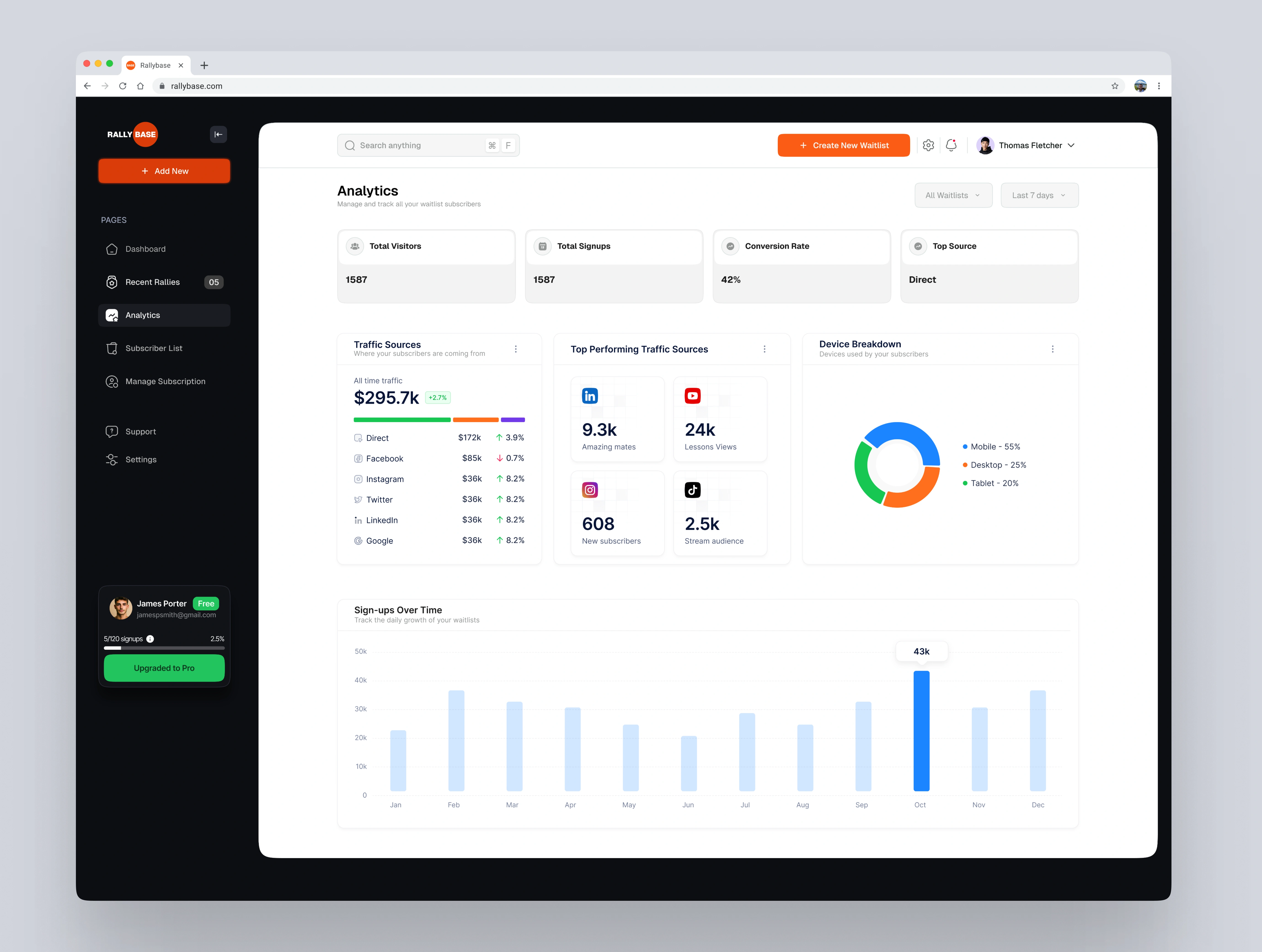 Rallybase is an all-in-one platform for waitlist creation, subscriber management, and email marketing. With built-in analytics and a simple, efficient design.