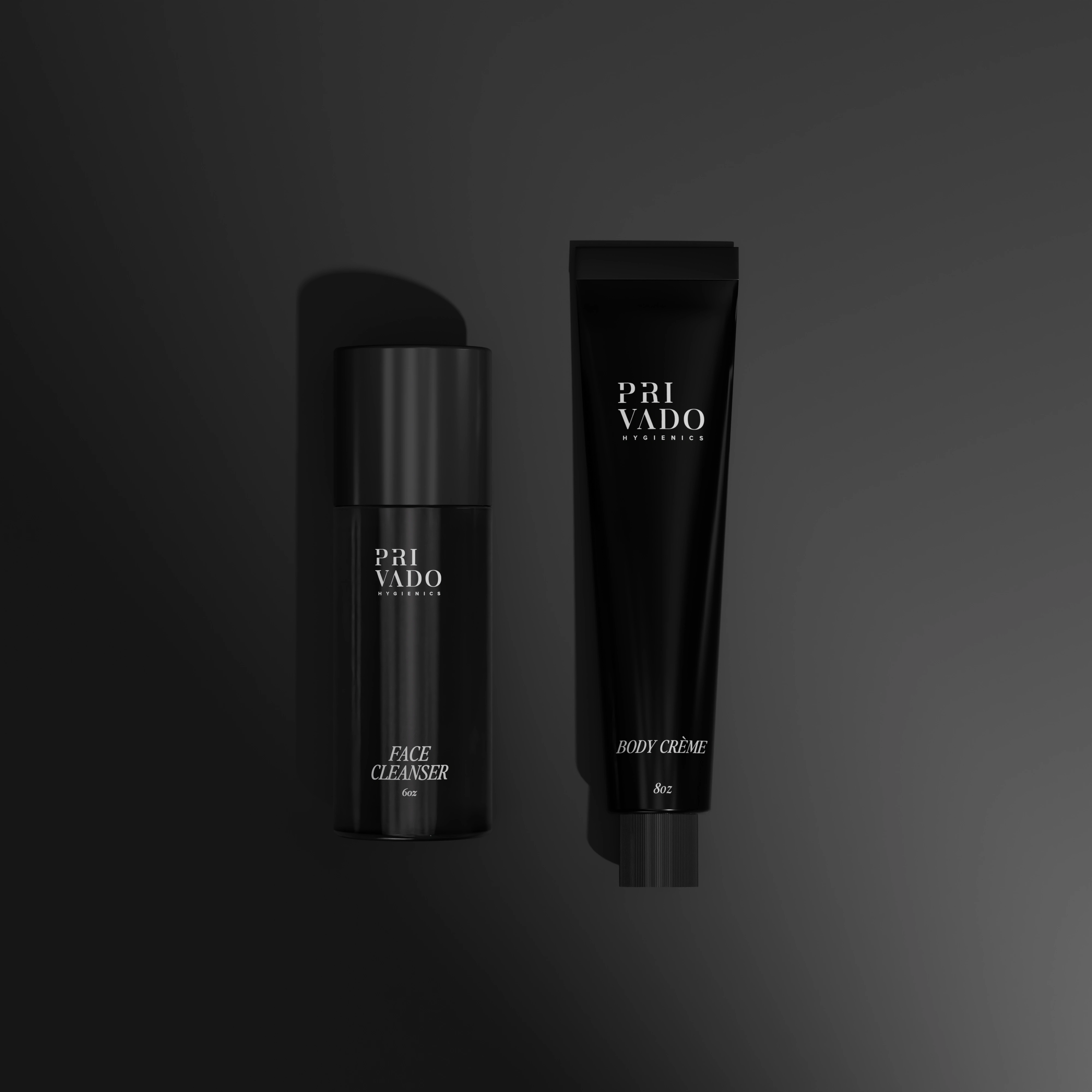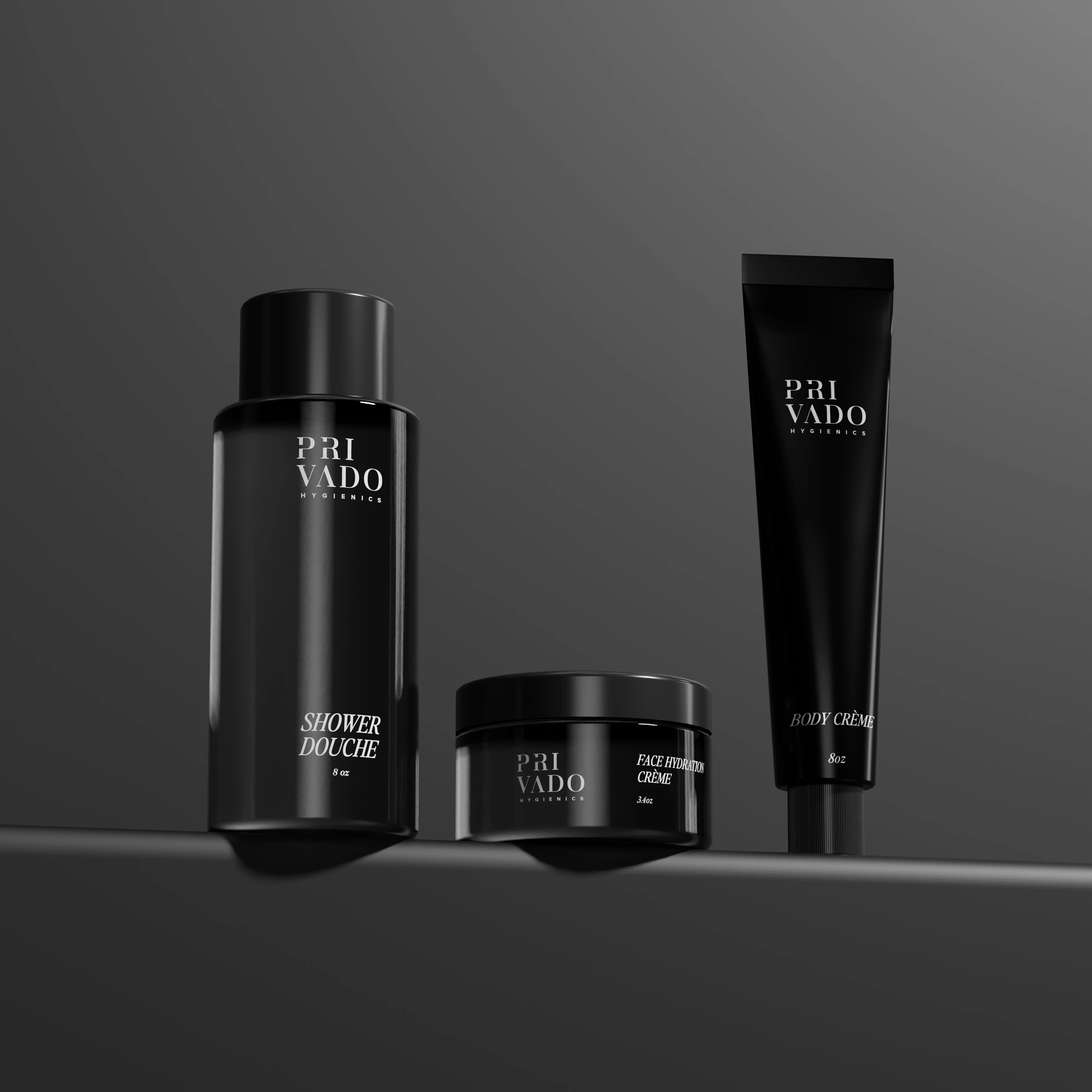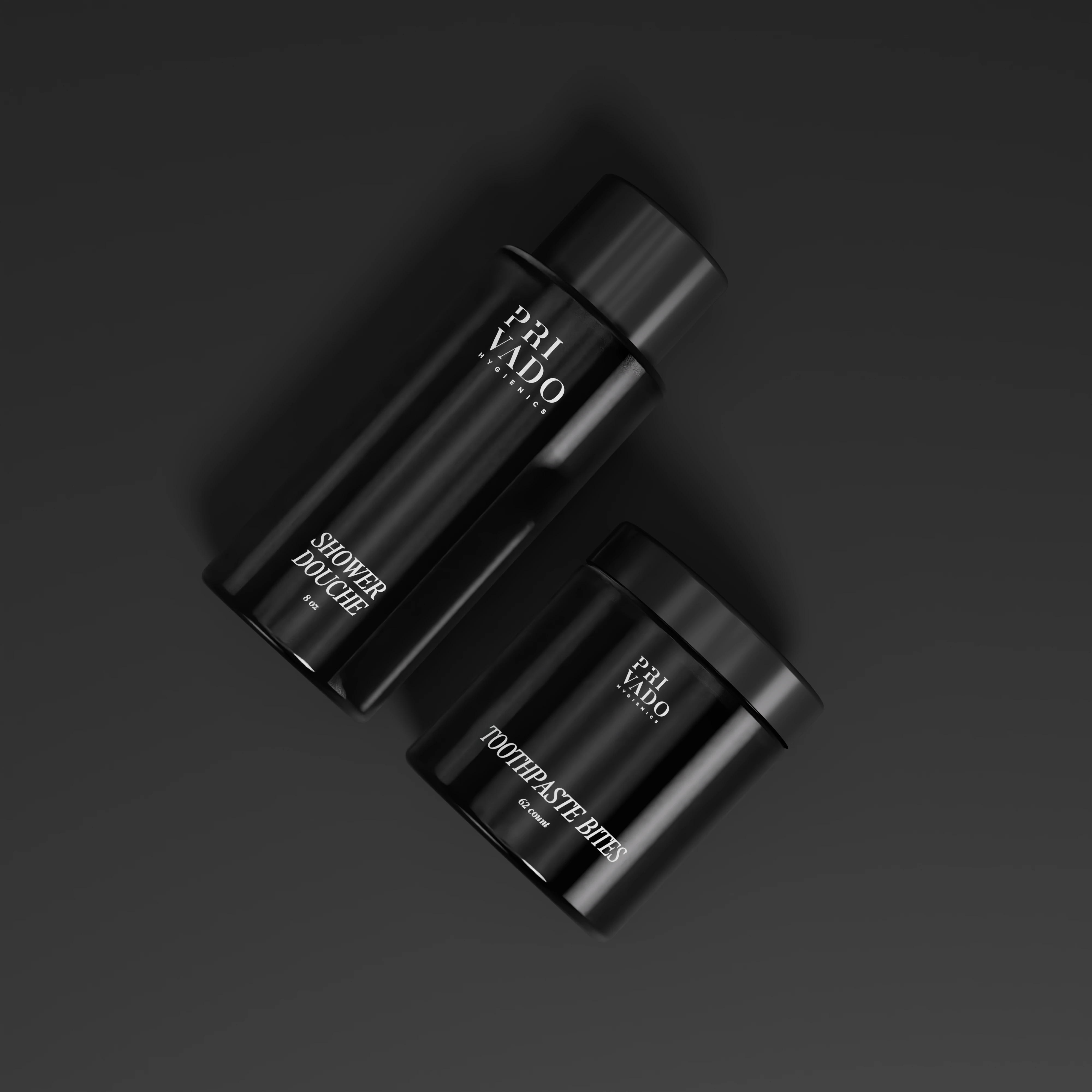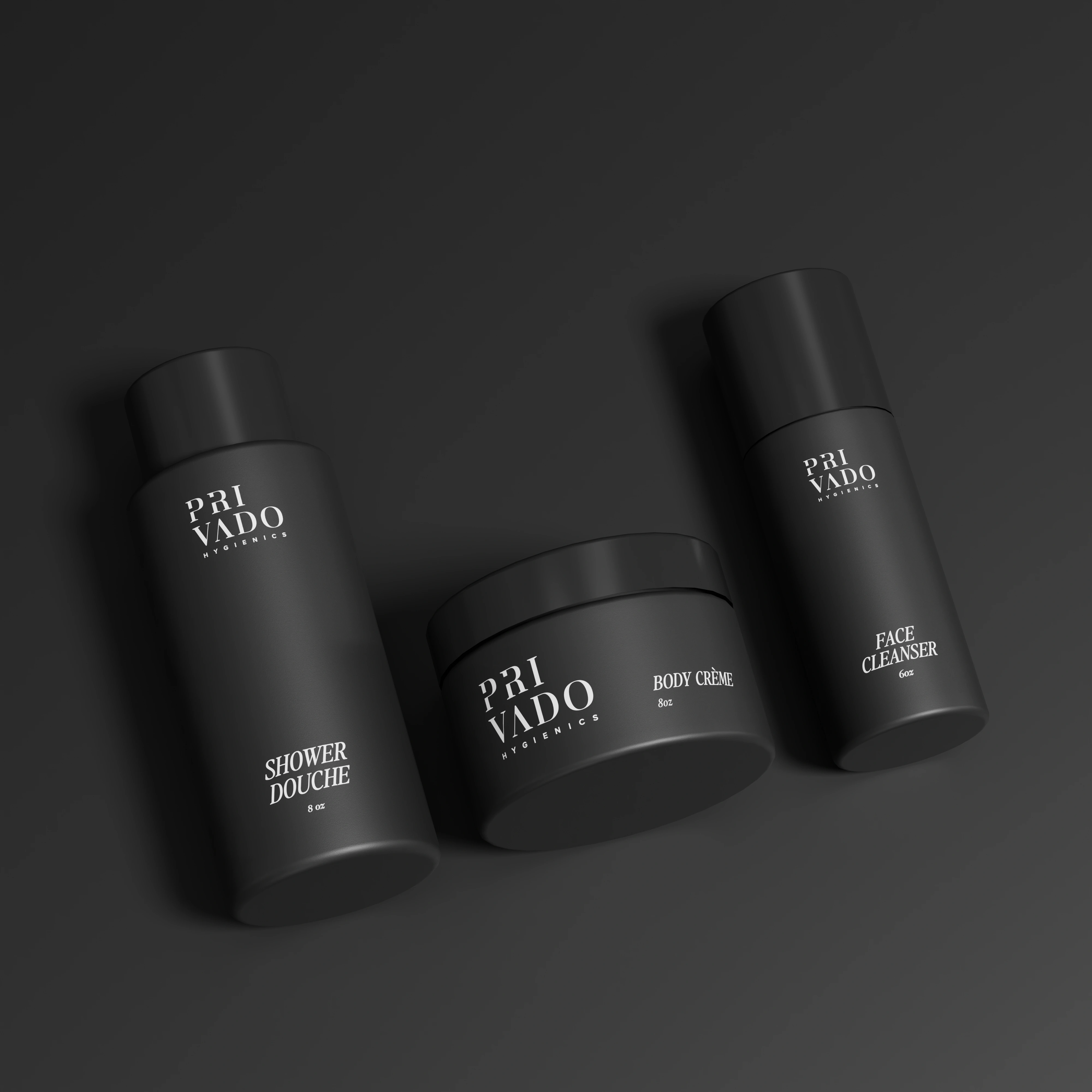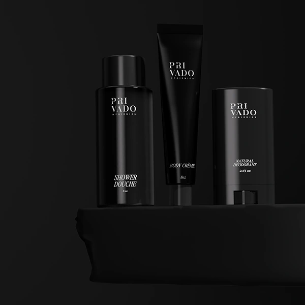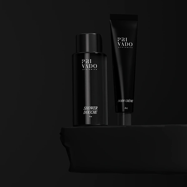 Explore a collection of stunning, minimalistic packaging and label designs crafted for modern cosmetic essentials: Shower Douche, Face Cleanser, Natural Deodorant, Toothpaste Bites, Face Cream, and Body Cream. Each piece is a blend of sophistication and simplicity, using bold black and white tones to create a versatile, high-end aesthetic that appeals across various moods and styles.