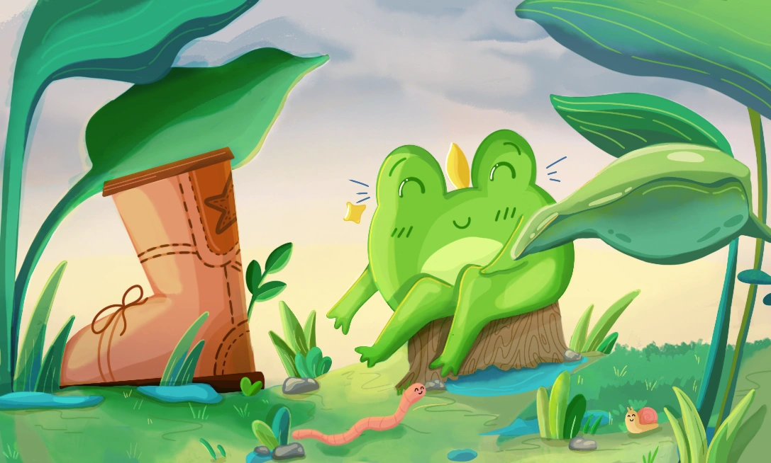 A personal children’s book cover concept featuring Froggy, a playful character with a golden leaf crown. Designed to showcase my illustration style for character-driven, kid-friendly stories.