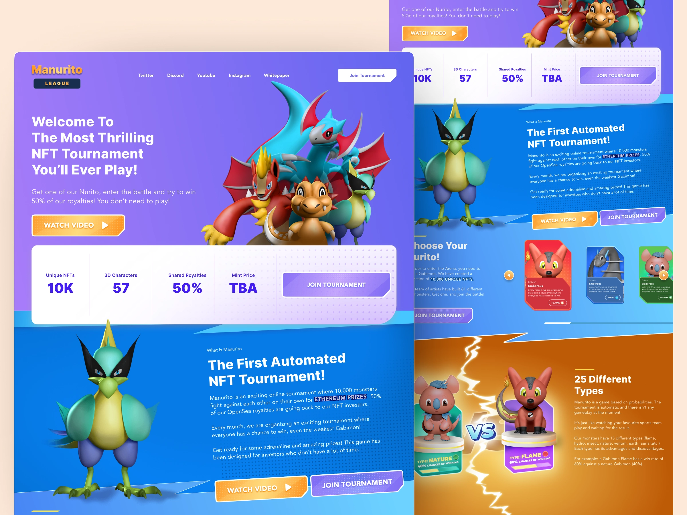 Manurito is the first automated NFT tournament platform that transforms digital collectibles into playable game characters. The platform gamifies NFT ownership by allowing users to battle with adorable creature NFTs called "Nuritos" in an engaging, tournament-style competition.