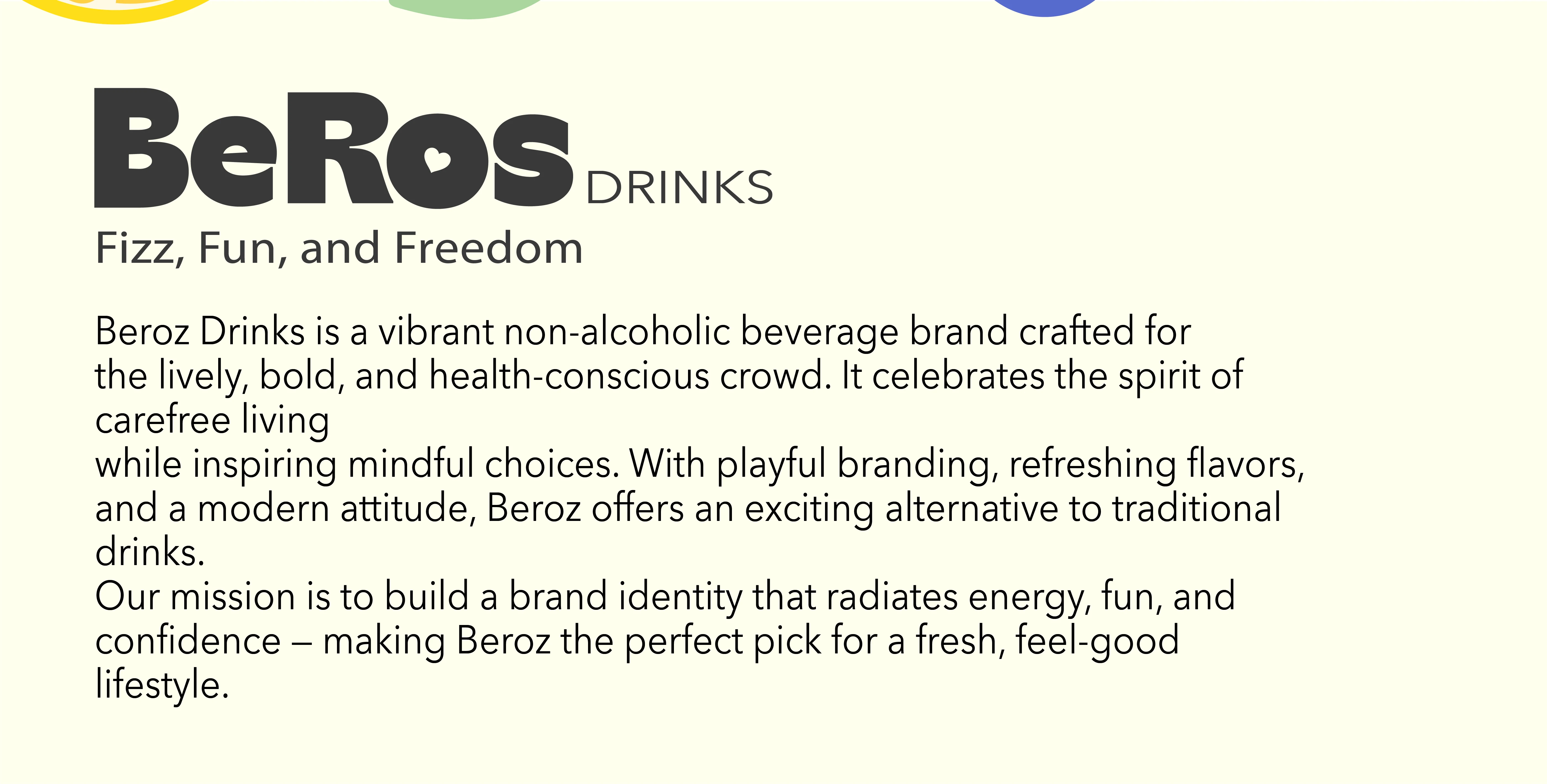 BeRos Drinks is a contemporary beverage brand that delivers bold, refreshing flavors with a clean and minimal approach. Built around the ideas of clarity, energy, and modern living, BeRos offers a premium yet approachable drinking experience. The brand is designed to resonate with young, health-conscious consumers who value both style and substance.