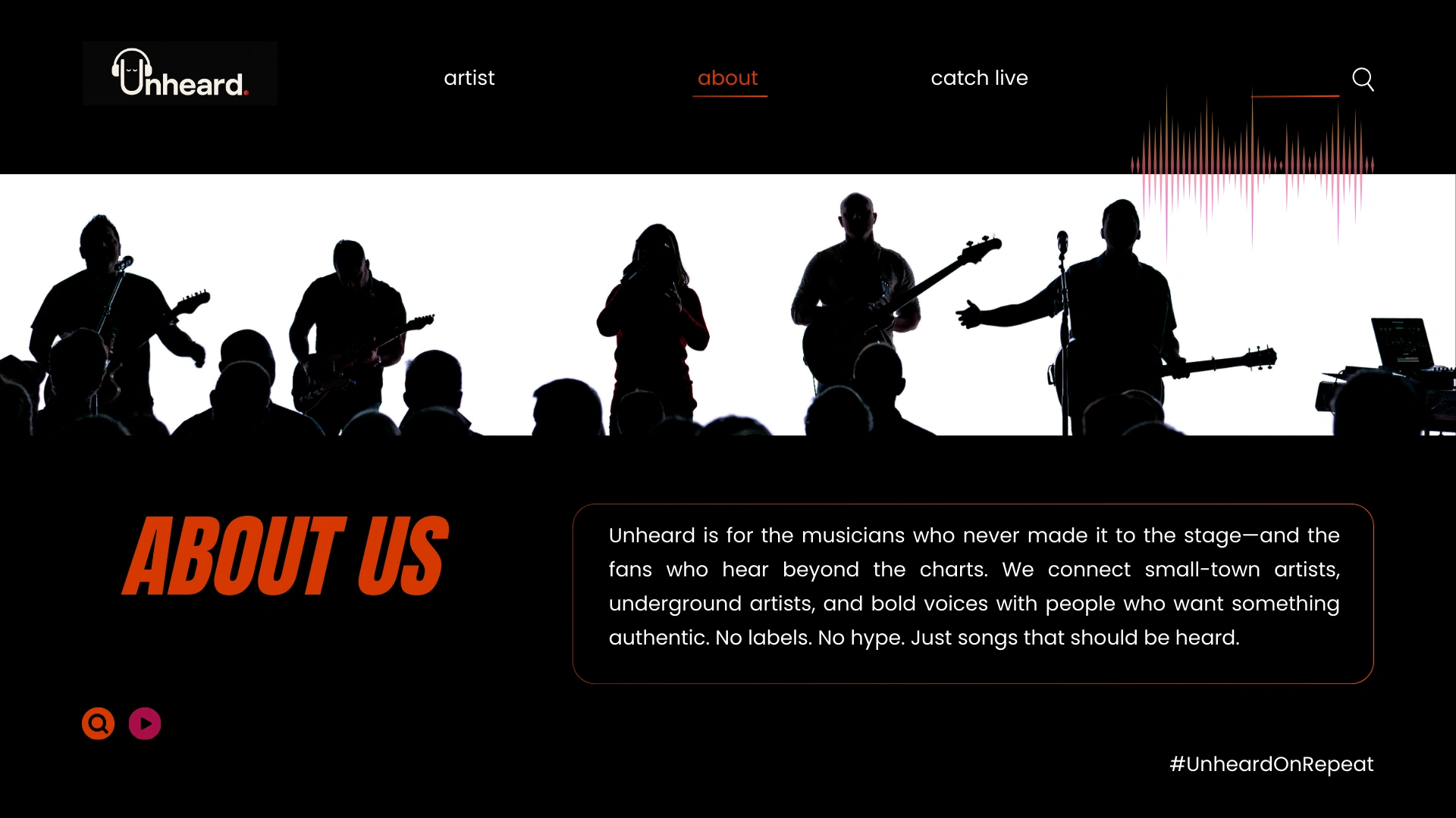 Created a bold brand identity and digital presence for Unheard, a conceptual music platform that amplifies independent artists.