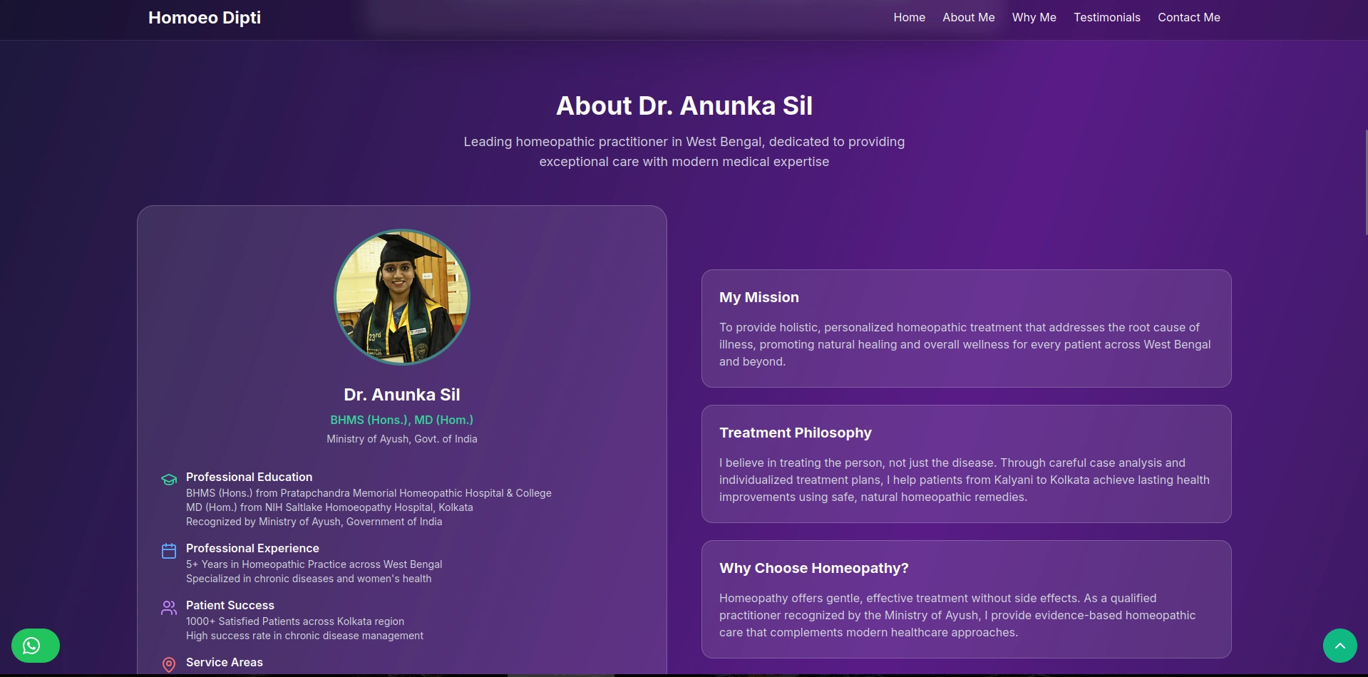 🏡 Service Showcase: Clear layout that highlights therapies, treatment types, practitioner expertise, and wellness philosophy.