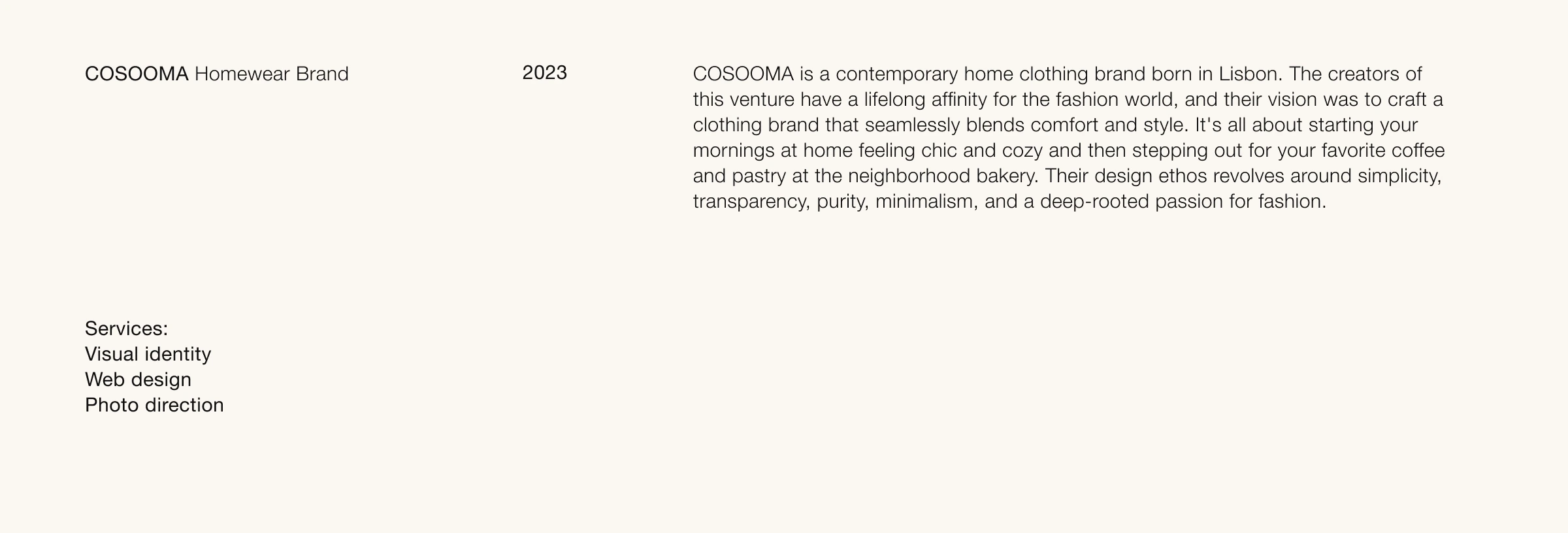The task was to create a cozy homewear brand blending comfort and style. The result is a simple, warm identity inspired by mornings at home and everyday ease.