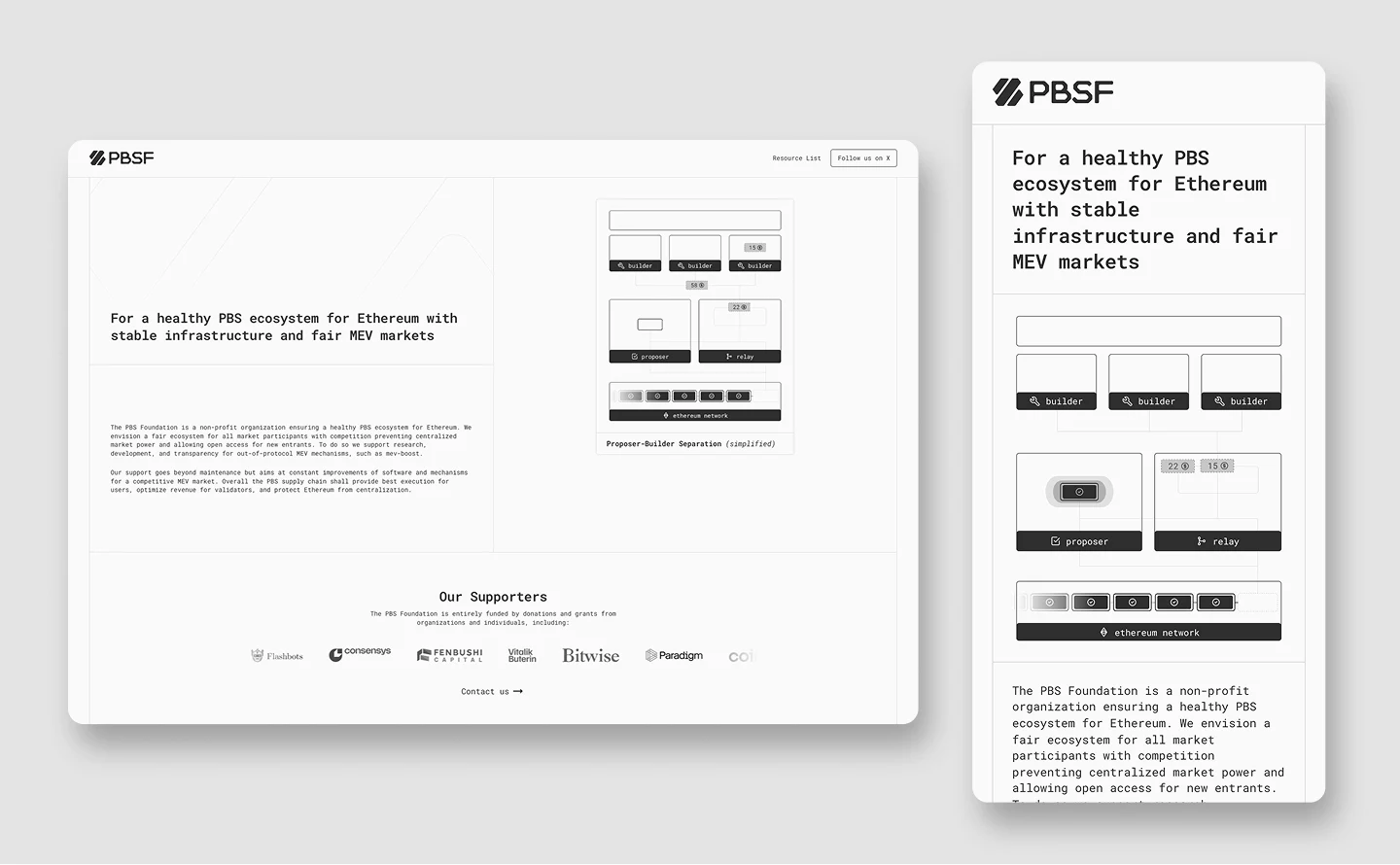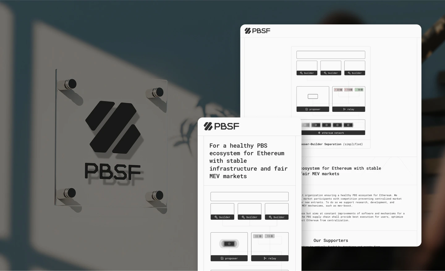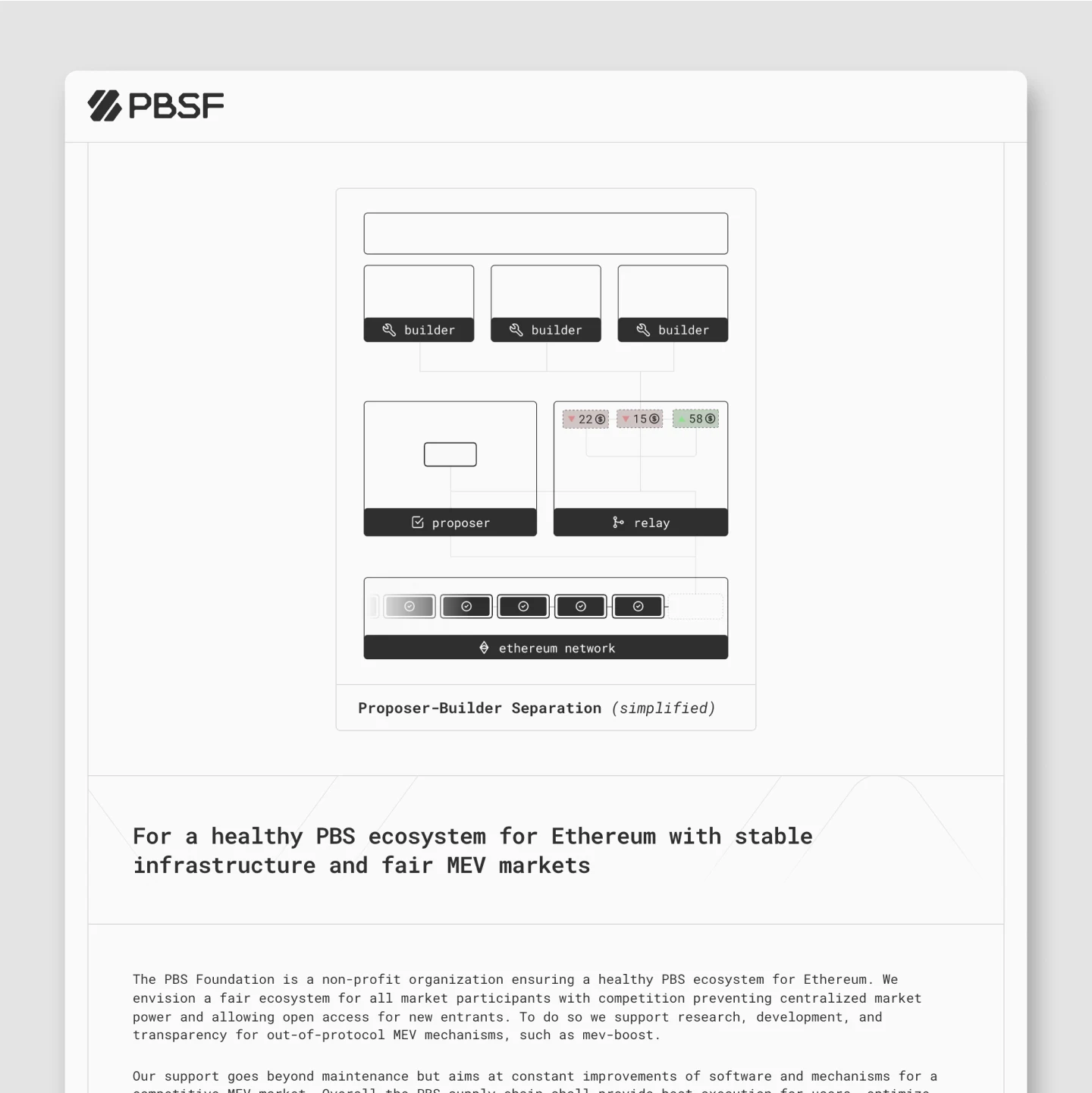The PBS Foundation needed to visually represent their specialized work in supporting research, development, and transparency for out-of-protocol MEV mechanisms. They required a brand identity and website that would convey technical credibility while remaining accessible to various stakeholders in the Ethereum ecosystem.