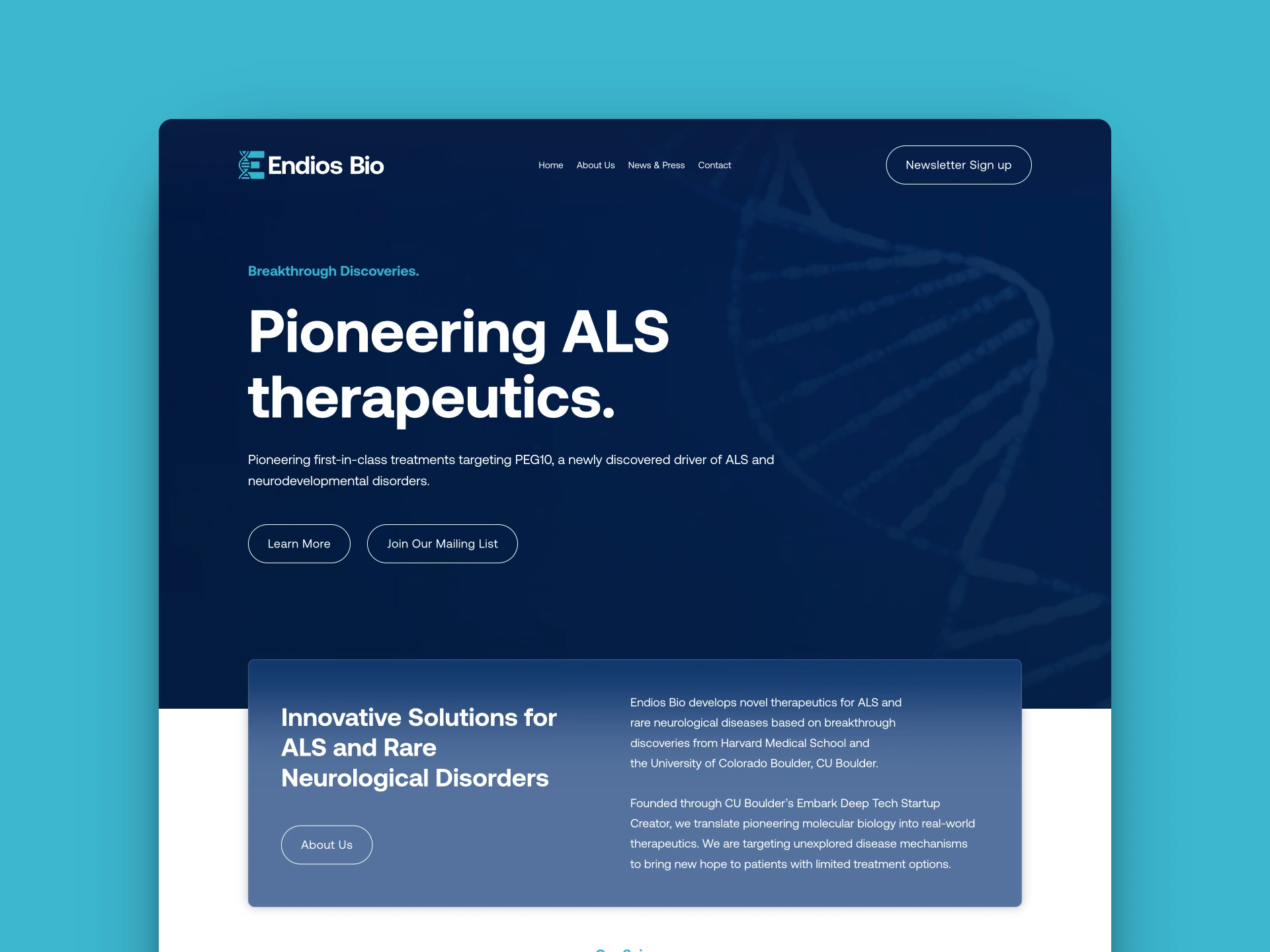 Endios Bio is a forward-thinking biotech company focused on advancing innovative ALS therapies. They needed a complete brand identity and a digital presence that would capture their vision while staying approachable and professional.