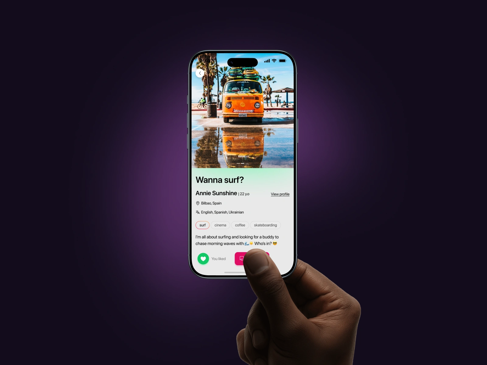 A focused social discovery concept demonstrating product thinking, strong mobile UX, and the ability to create emotional engagement within a 6-hour sprint.