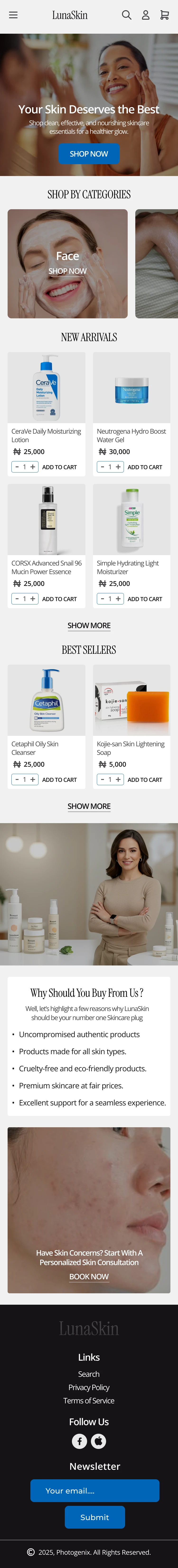I designed a skincare website for LunaSkin to create a seamless shopping experience.It showcases the brand's unique products with a simple, user friendly design