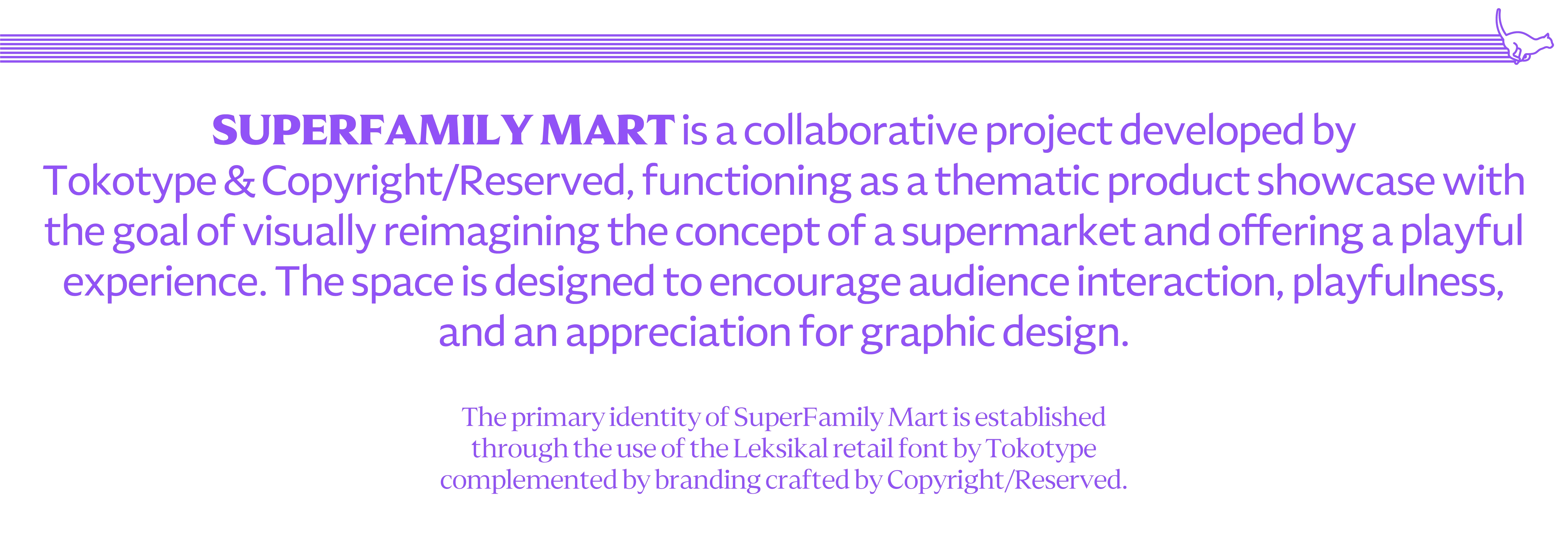 SuperFamily Mart is a collaborative project developed by Tokotype and Copyright/Reserved.