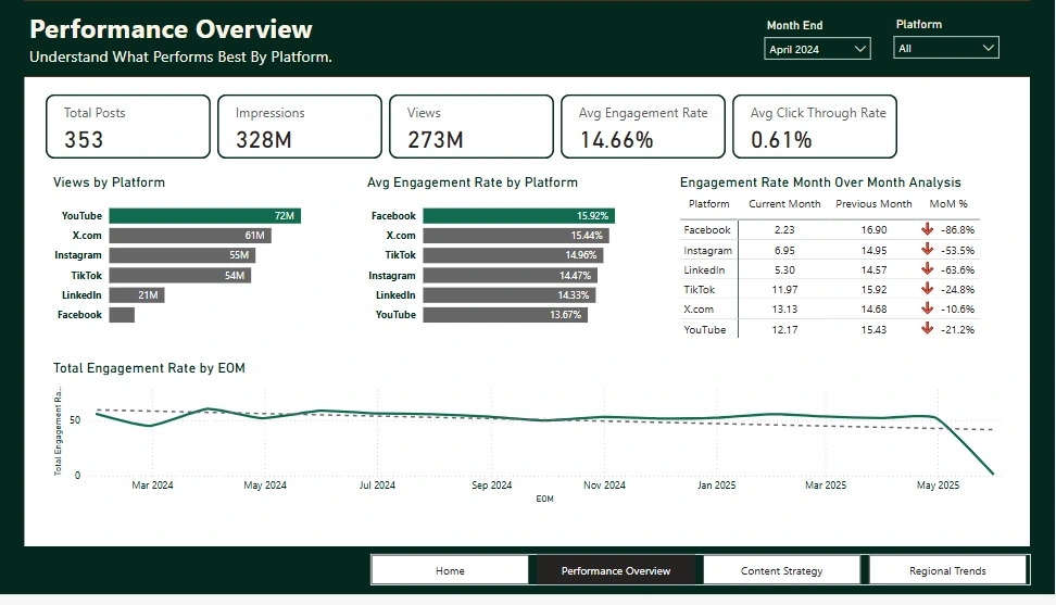 – Uneven performance: A small set of “hit” posts carries the account, while the majority underperform, making overall results volatile and harder to forecast.