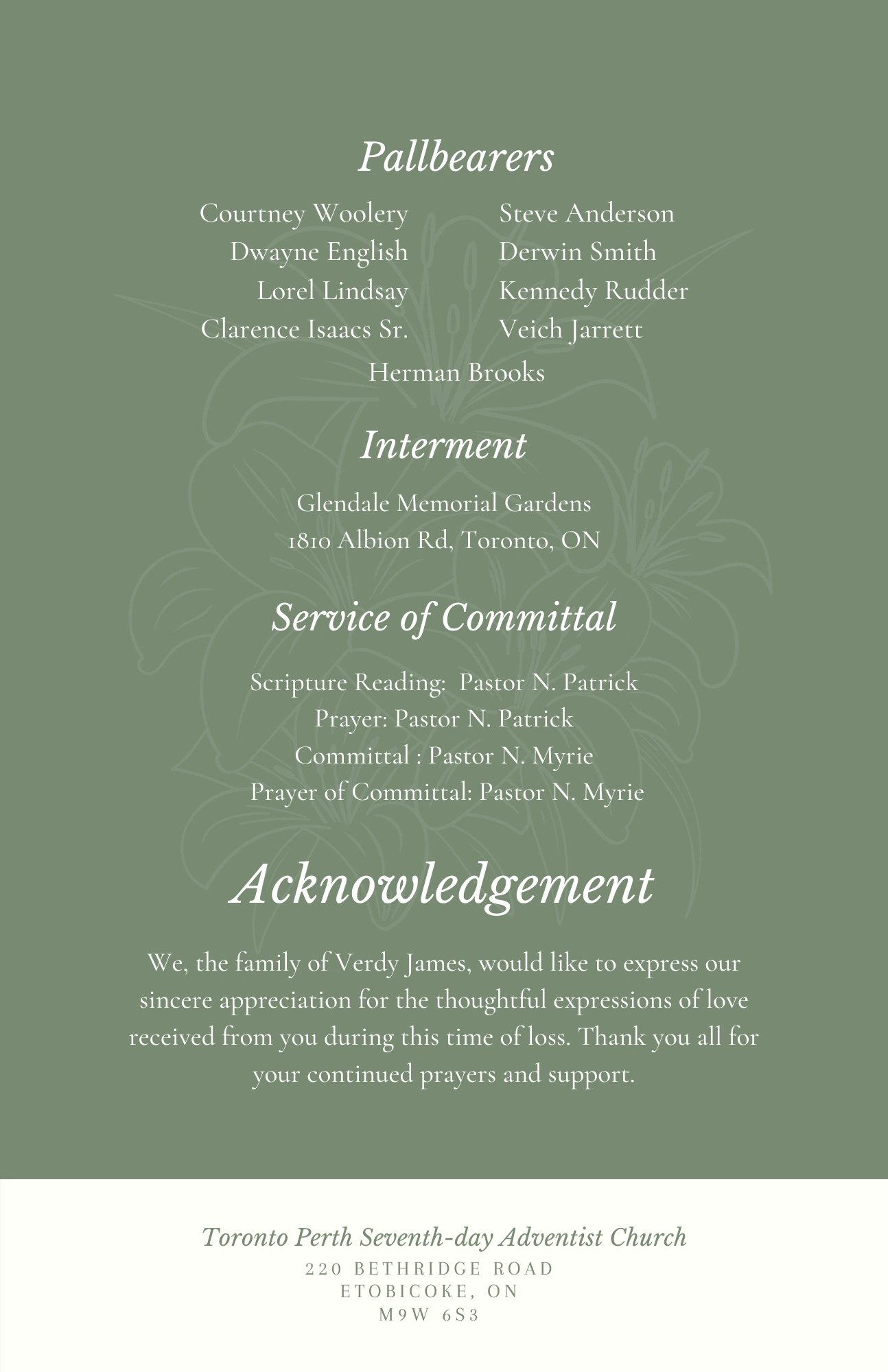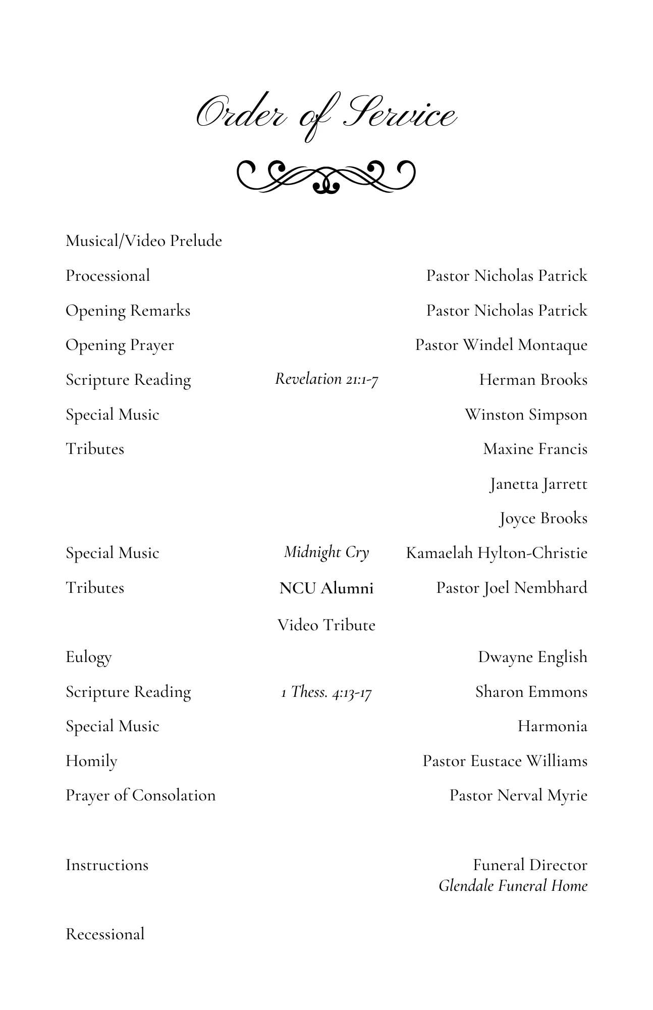 Client requested a simple program booklet for their loved ones funeral service