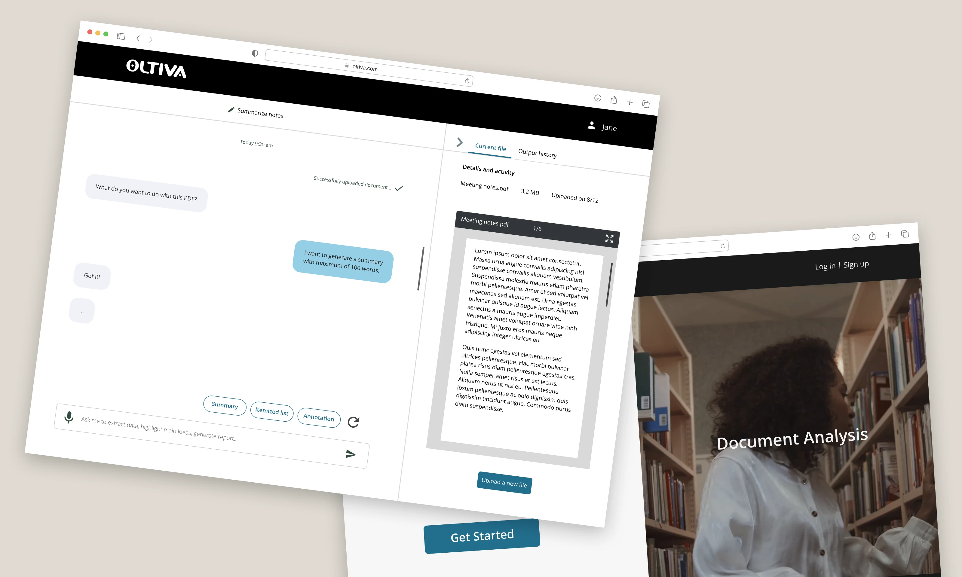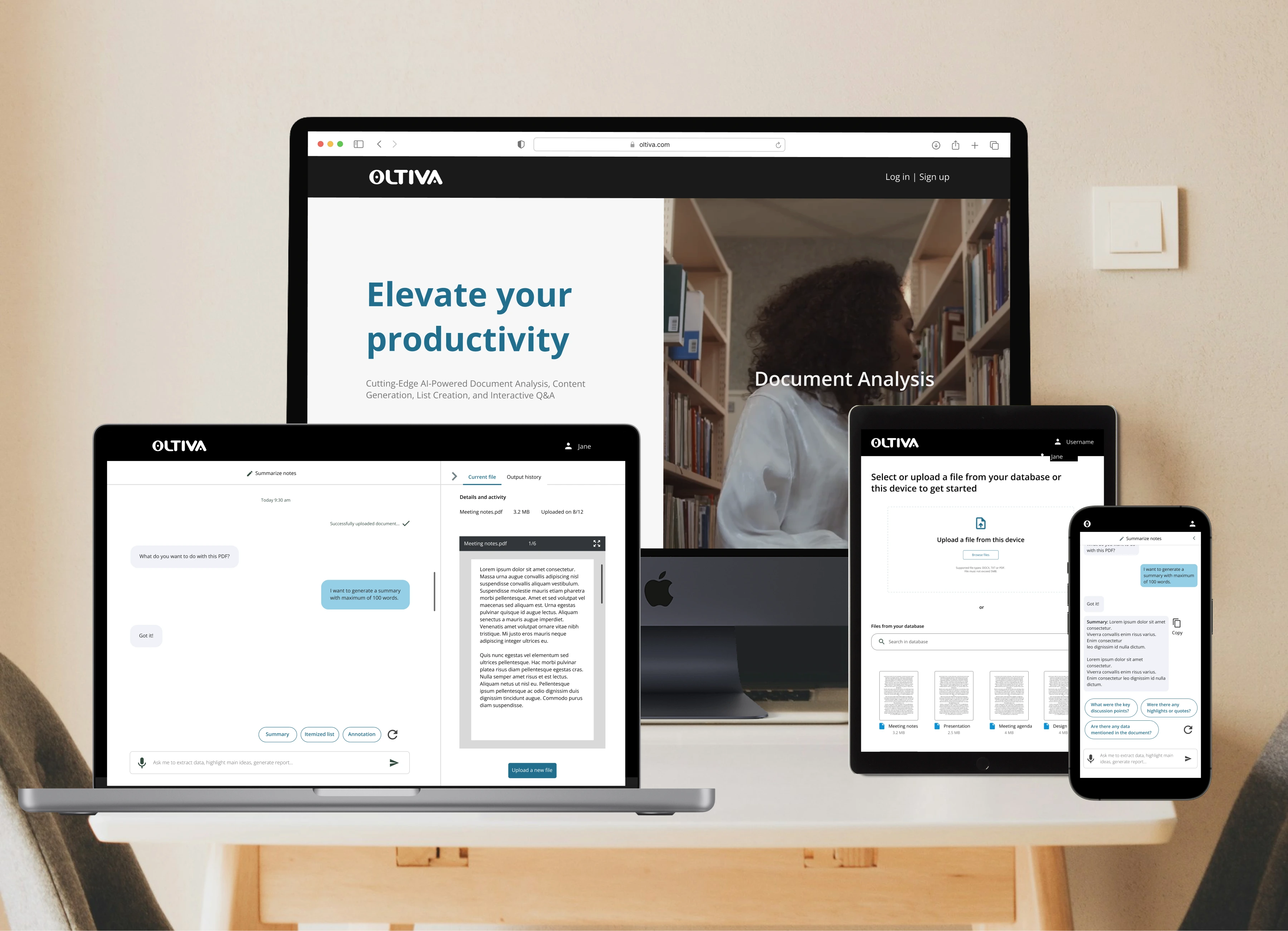 As the sole UX Designer, I led research, prototyping, and user flow design for Oltiva AI, an internal productivity tool helping 2,600+ global sales representatives save hours per day by streamlining document search and surfacing key deal insights.