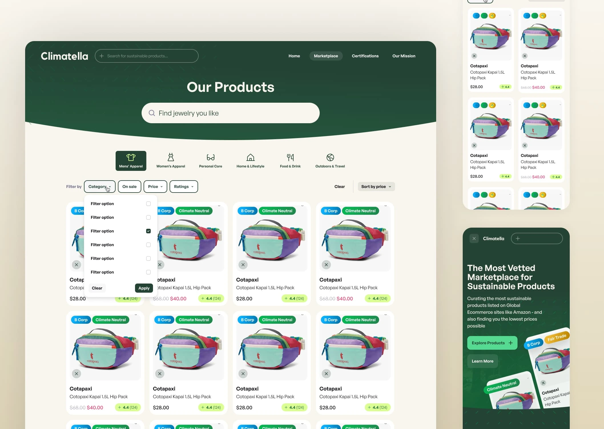 Worked with the Founder of Climatella to create a new responsive website design to help increase sales of environmentally friendly products.