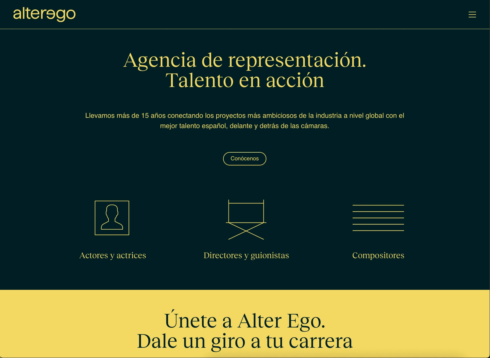 Alter Ego Talent House site made from scratch using WordPress as a CMS