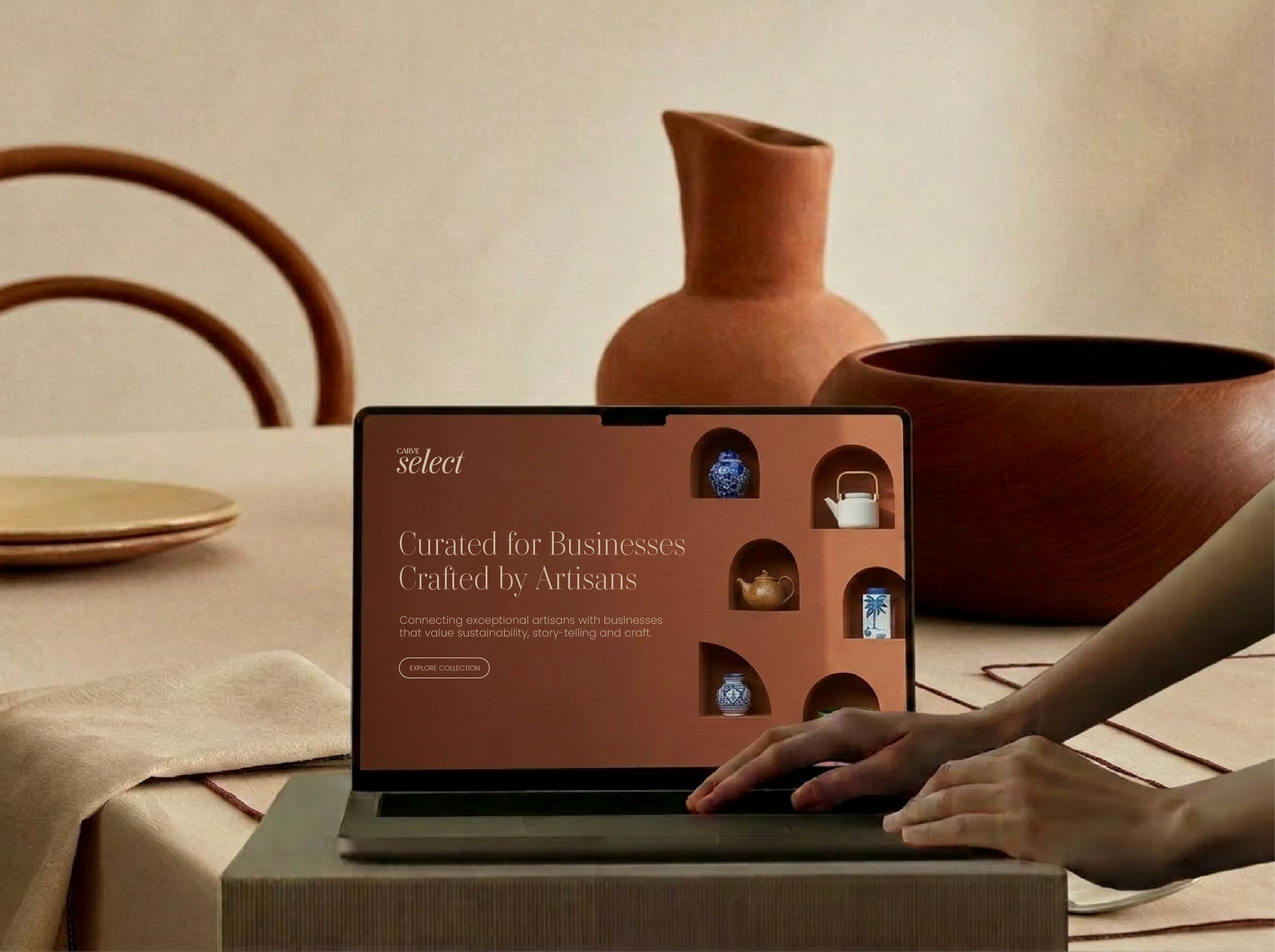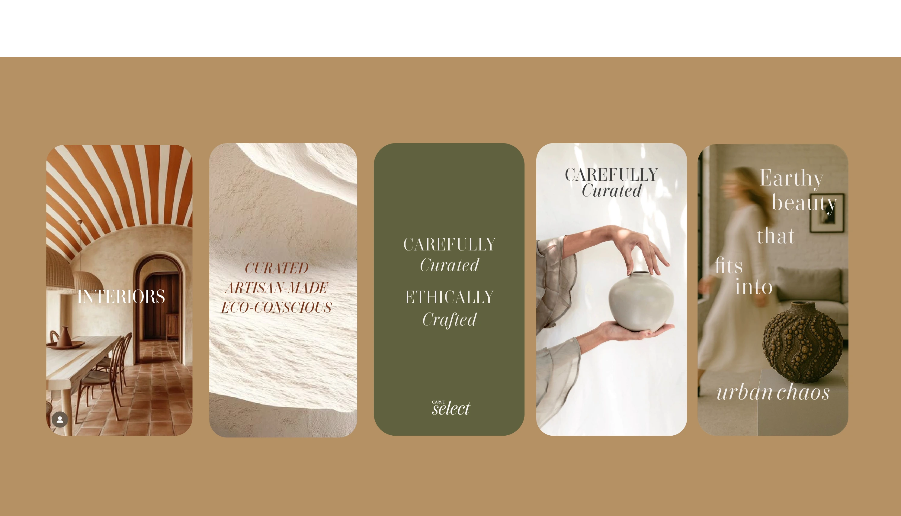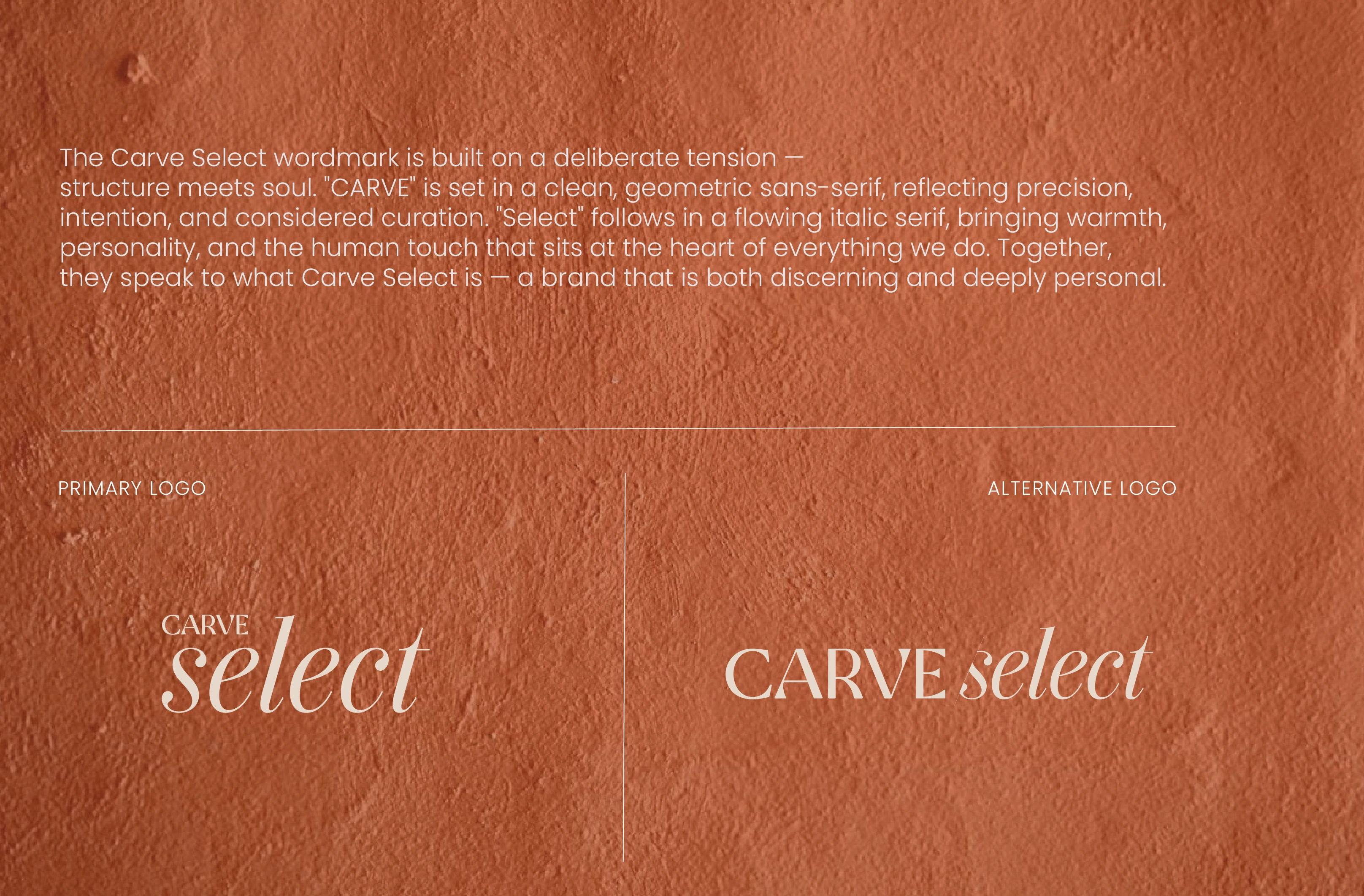 The starting point was the material itself — clay, earth, texture, and the making process. The colour palette was drawn directly from the natural world of ceramic craft: terracotta, moss green, sunbaked sand, and soft clay. These weren't aesthetic choices made at a distance — they were chosen because they are the colours of the thing Carve Select curates.