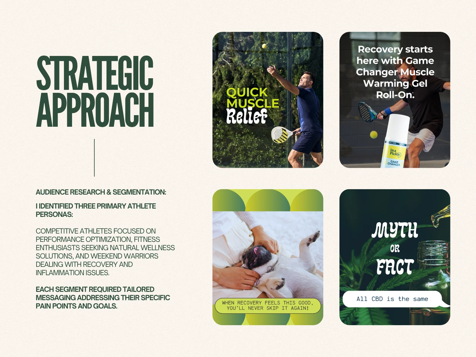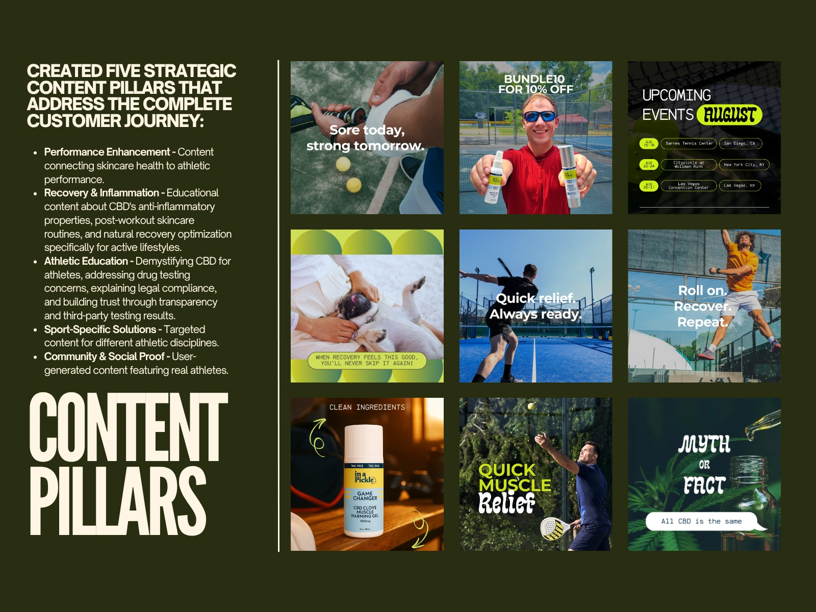 The strategy successfully positioned "In A Pickle CBD" as a trusted authority in the athletic CBD space. The content framework drove consistent engagement from the target athlete demographic, established credibility in a skeptical market, and created a foundation for sustainable community growth.