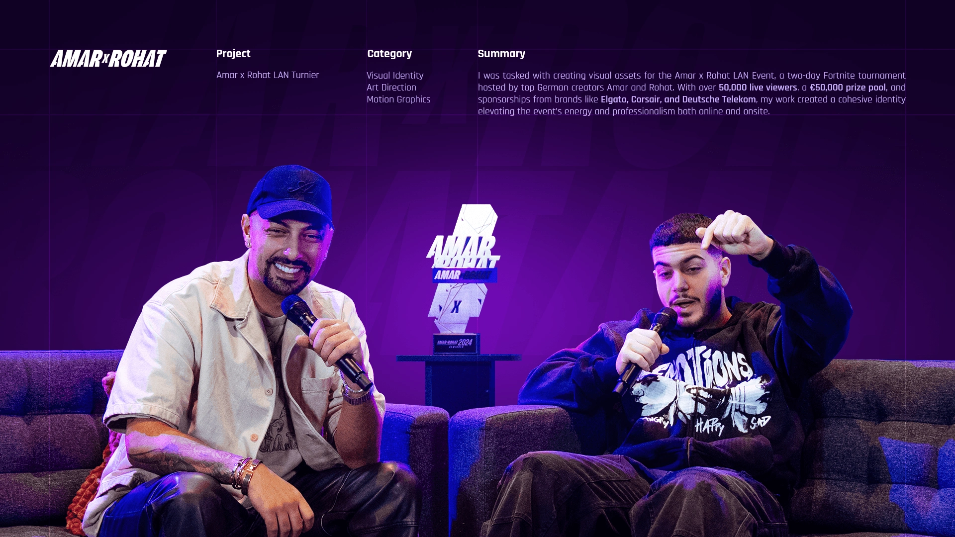 Amar x Rohat LAN Event, a two-day Fortnite tournament hosted by top German creators Amar and Rohat. With over 50,000 live viewers, a €50,000 prize pool.