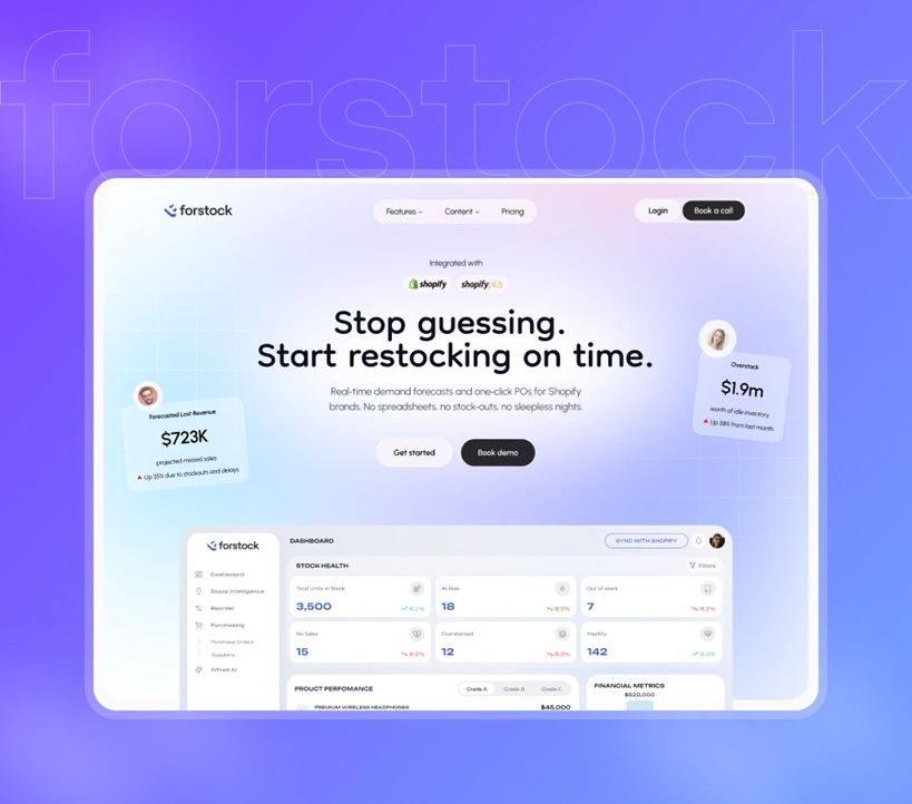 ๐จ๐ซ๐ฌ๐ญ๐จ๐๐ค is an AI-powered inventory management platform built specifically for ๐ฆ๐ต๐ผ๐ฝ๐ถ๐ณ๐ brands. The platform delivers real-time demand forecasts, one-click purchase orders, and intelligent reorder alertsโhelping merchants eliminate spreadsheets, prevent stockouts, and reduce excess inventory. Currently in pre-launch with a waitlist, Forstock features "Alfred AI," an intelligent assistant that understands store data and speeds up inventory decisions.