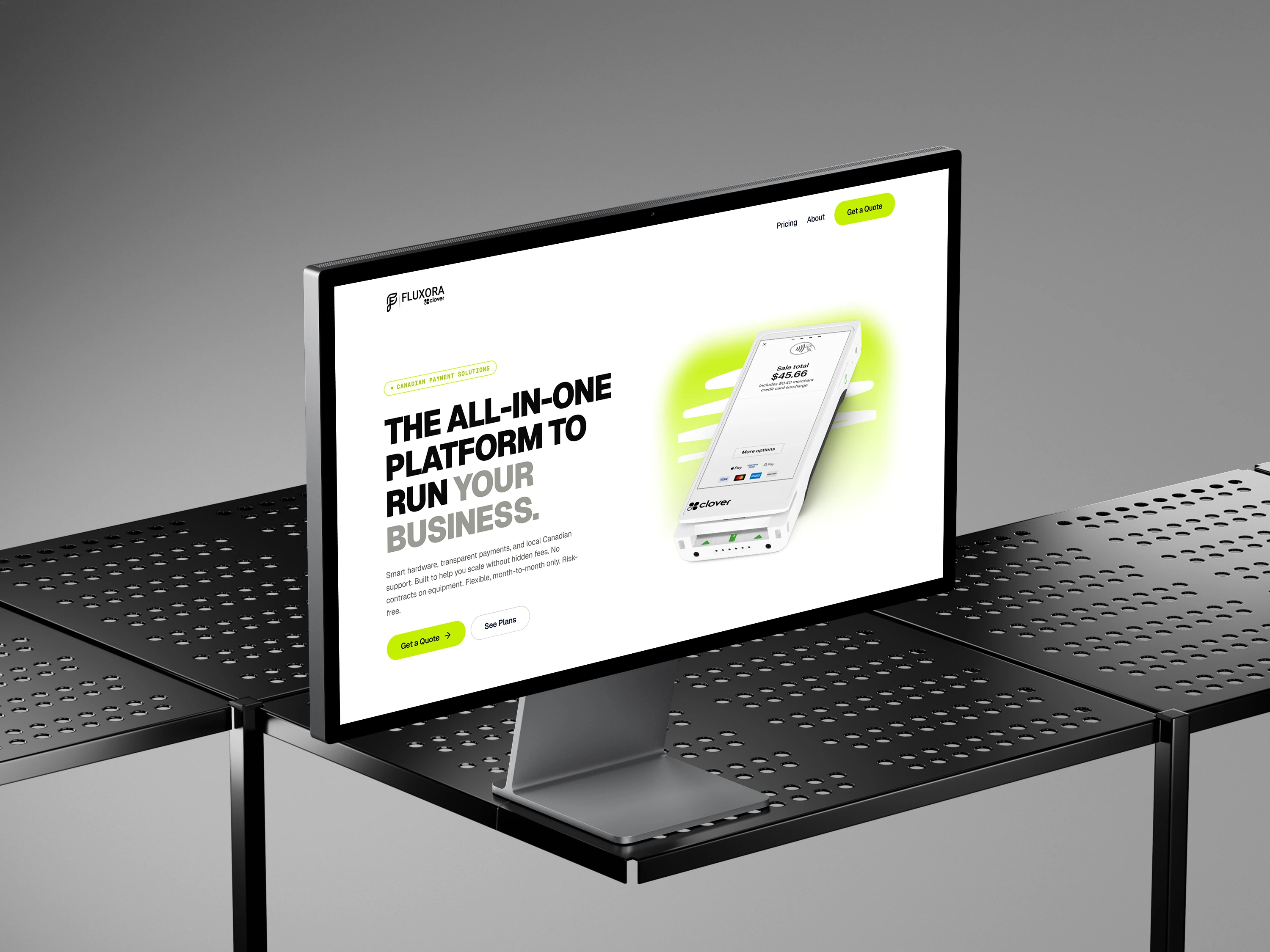 Designed the entire site from scratch based on the client's brief and brand direction. Built a light-theme visual identity with a neon lime green accent, incorporating Clover POS hardware branding throughout. Developed all pages in Framer with full responsive design across desktop, tablet, and mobile. Wrote and implemented SEO meta data and best practices which the WP site lacked.