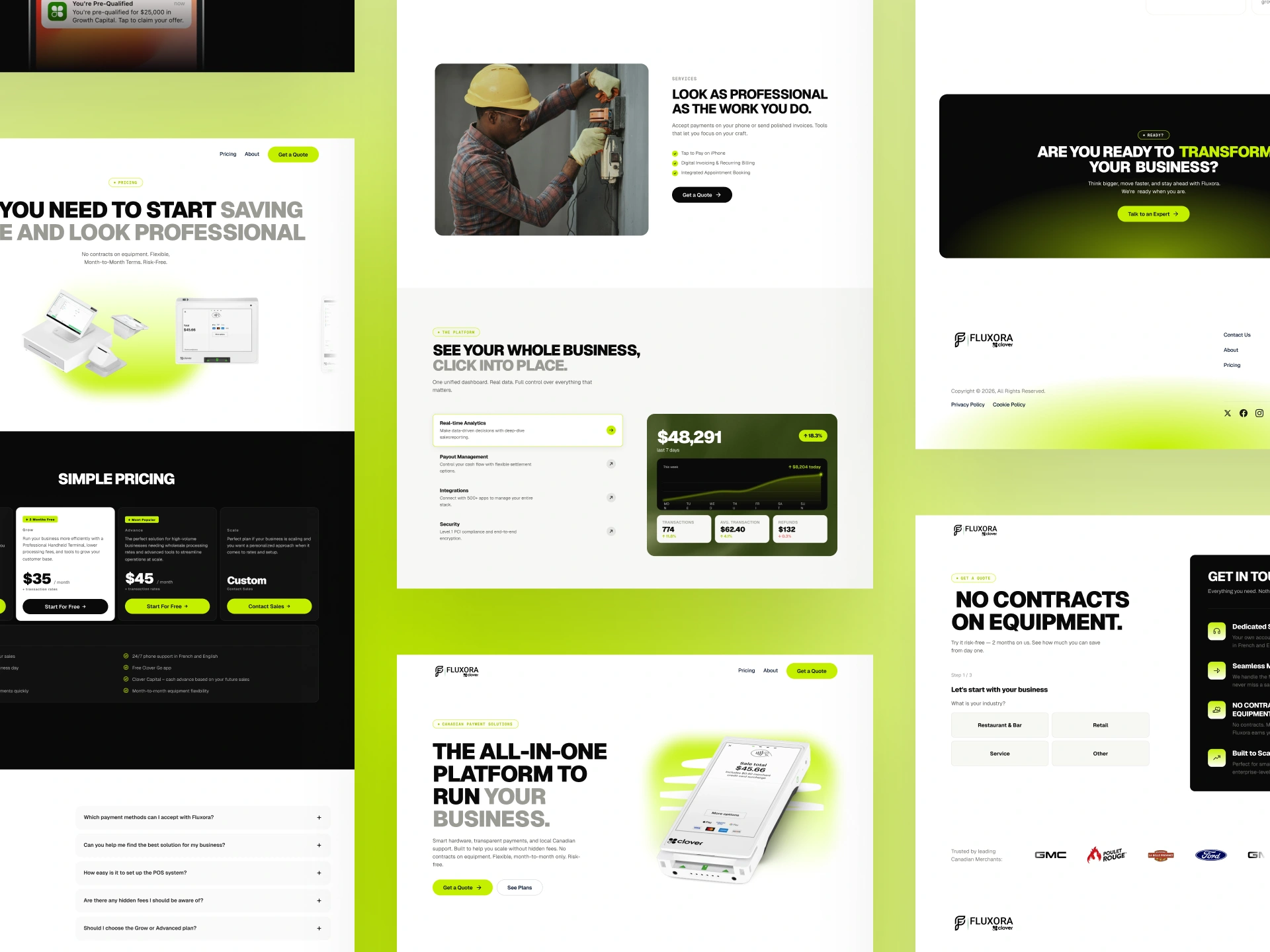Fluxora is a Canadian payment processing company and Clover POS partner. They needed a complete website overhaul to match their growth trajectory and brand ambitions. The existing WordPress site was outdated, had weak SEO structure, and didn't reflect the quality of their product offering.