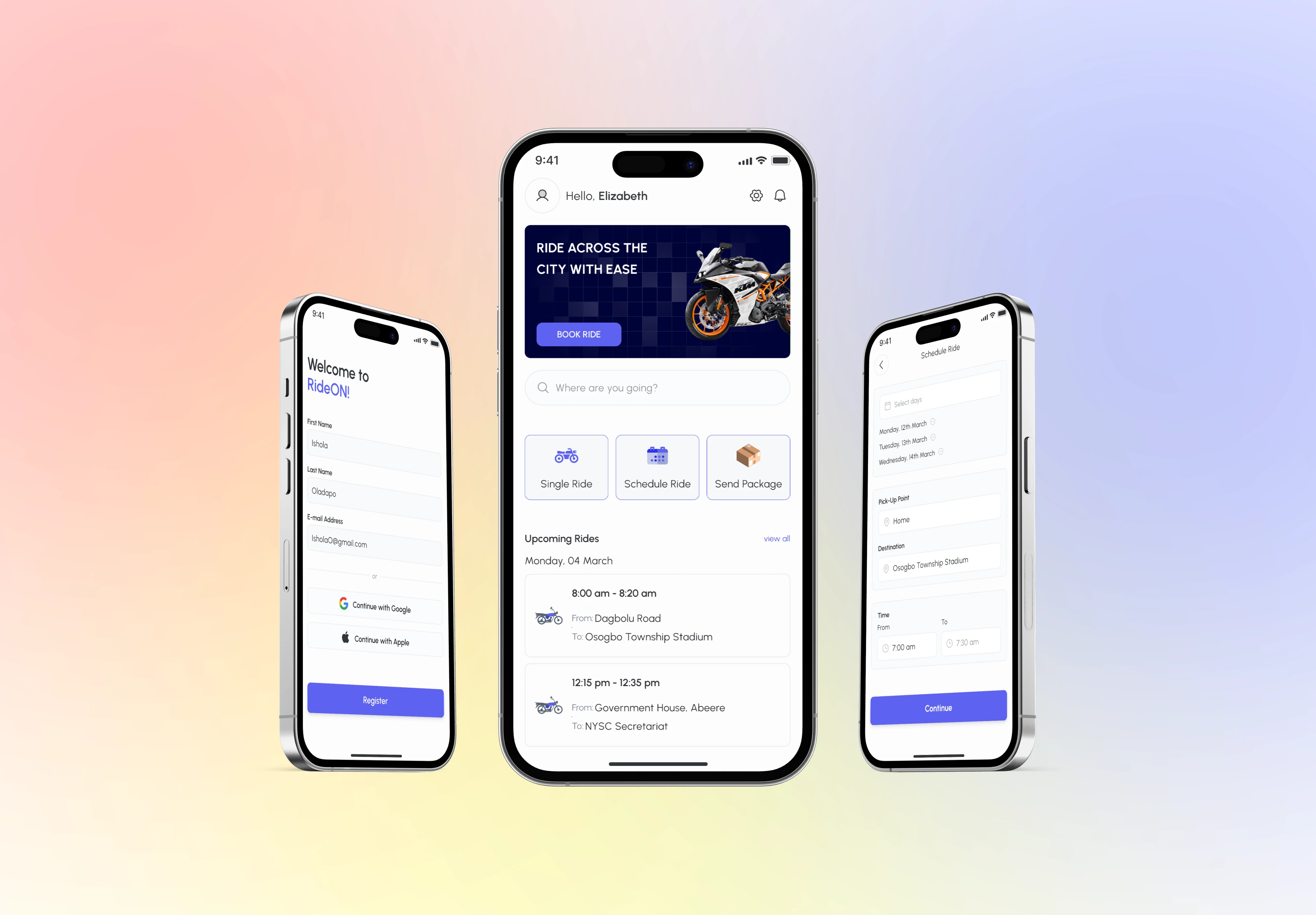 RideON is a new motorcycle ride-hailing and delivery app in Nigeria, built to help users book rides, schedule trips, and send packages with ease.